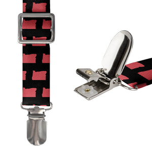 Oregonians will love the Oregon State Outline suspenders. These customizable Oregon suspenders feature a repeating outline of the Beaver State.
