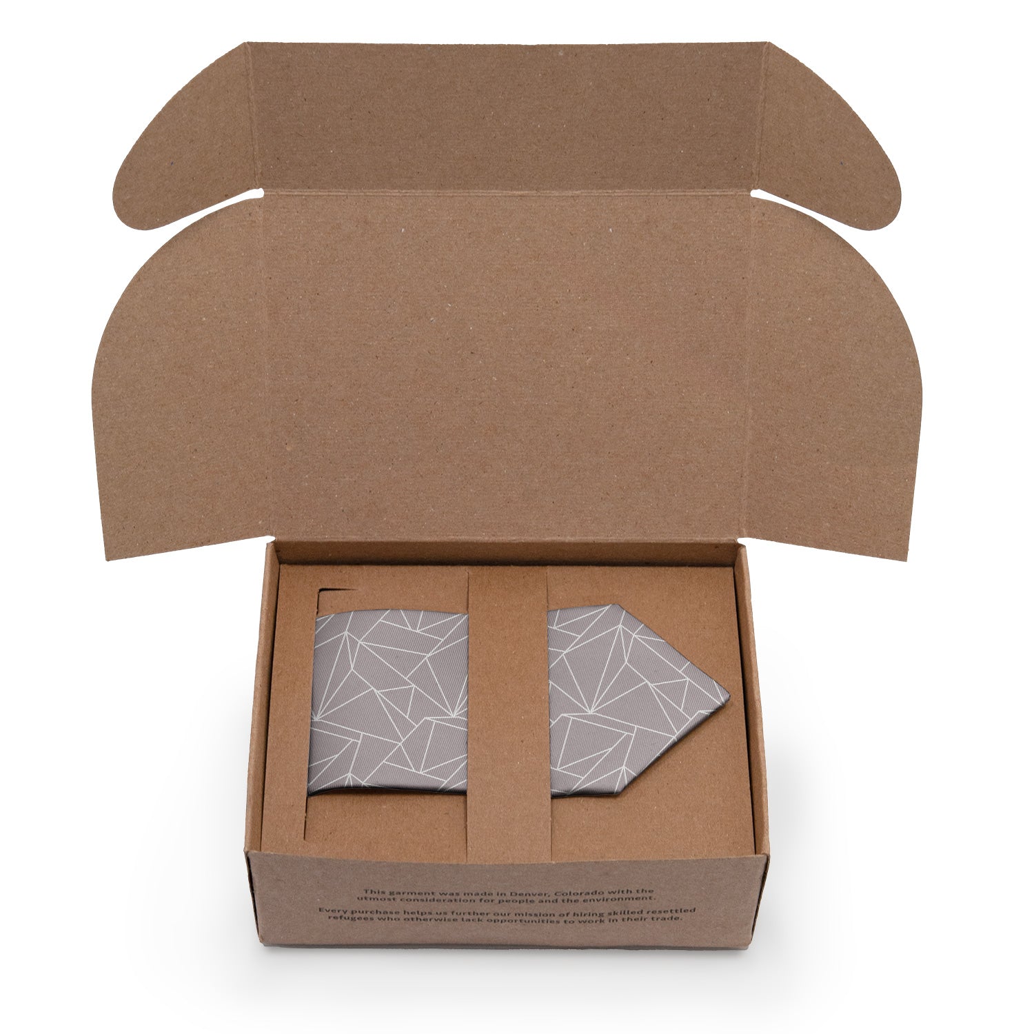 Crisp lines unfold like paper cranes in the serene Origami Geometric necktie. The modern geometric design of the Origami tie looks good in any color, making this a great fit for customization.