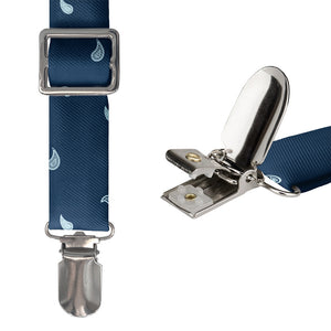 Printed fabric straps are 1-inch wide and secured to an elastic rear strap with vegan leather Y-back to allow the suspenders to move with you and extend as you bend. We use silver alligator pant clips that feature a special mechanism to ensure the suspenders clamp securely to pants.