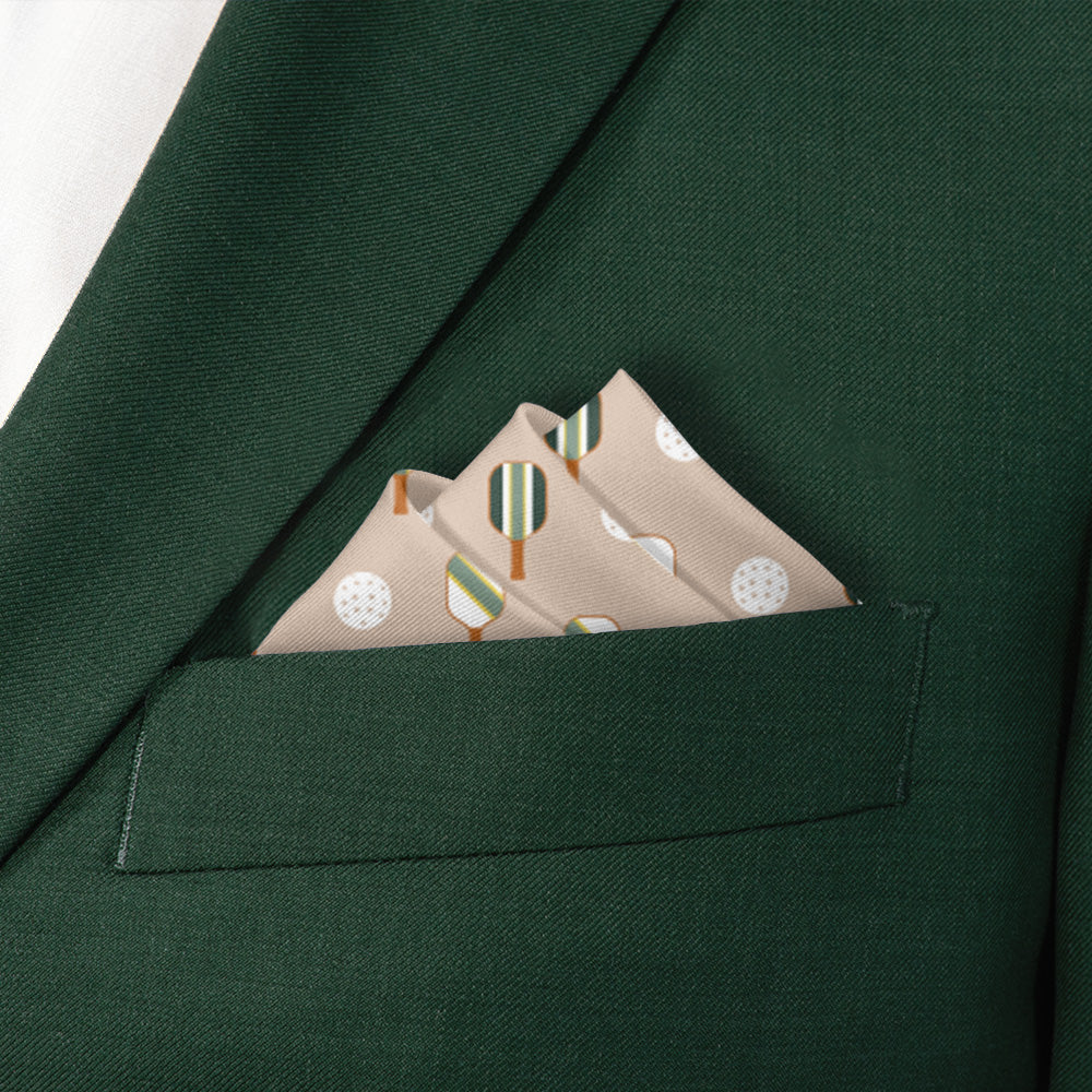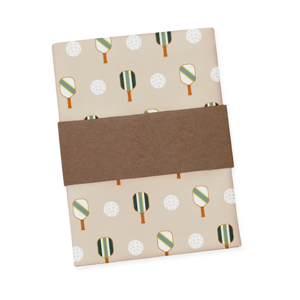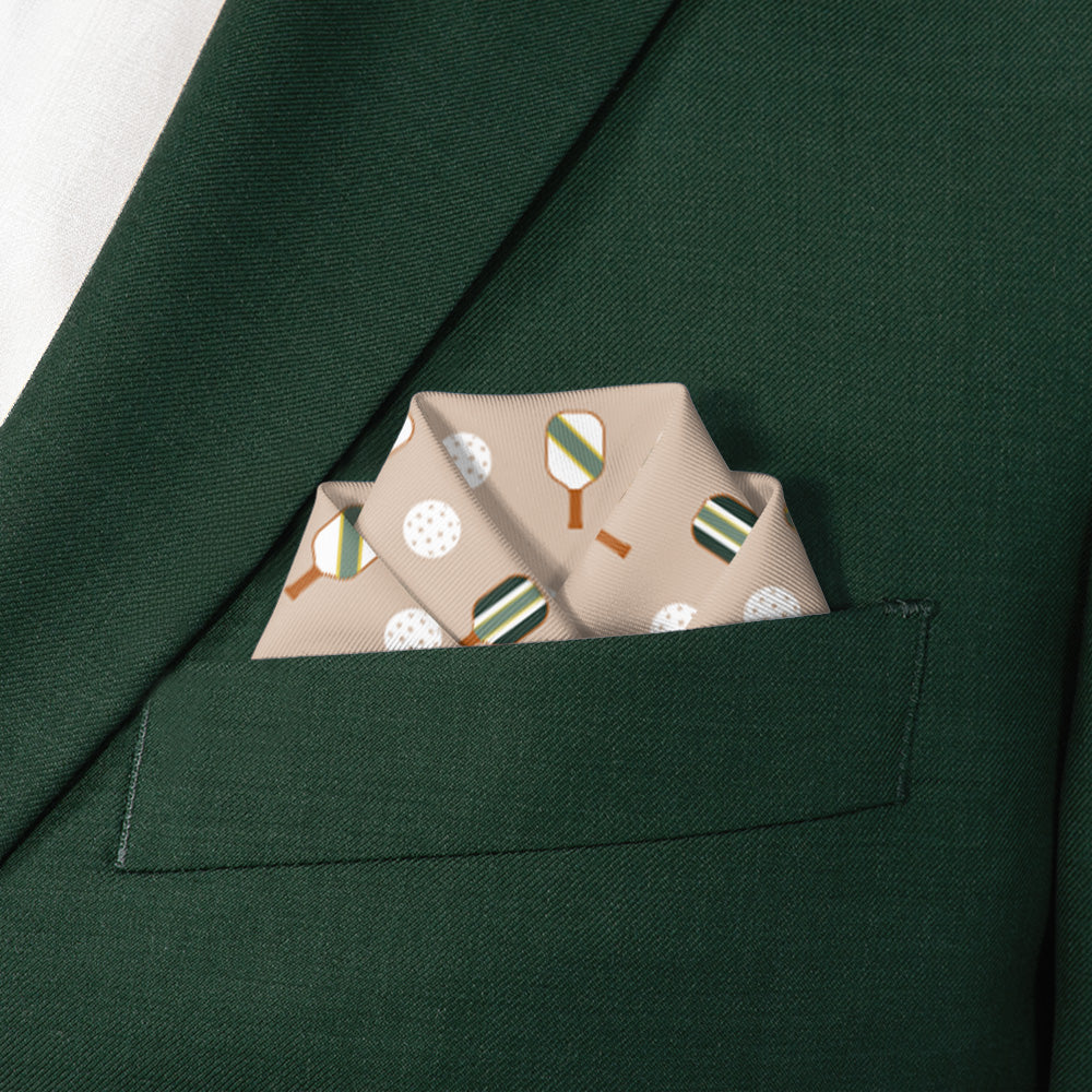 Add some fun to your attire with this quirky Pickler Pickleball Pocket Square. Showcasing a playful design with repeated paddles and ball icons, this pocket square is a must-have for any pickler. Personalize it to match your style or your pickleball team colors for a one-of-a-kind look.