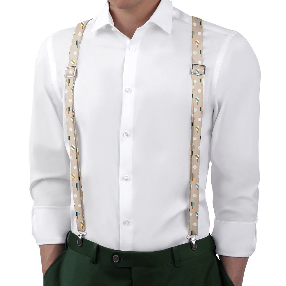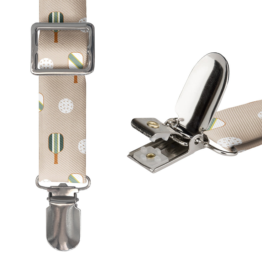 Add some fun to your attire with this quirky Pickler Pickleball Suspenders. Showcasing a playful design with repeated paddles and ball icons, these suspenders are a must-have for any pickler. Personalize them to match your style or your pickleball team colors for a one-of-a-kind look.