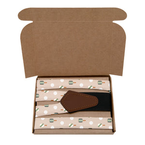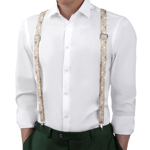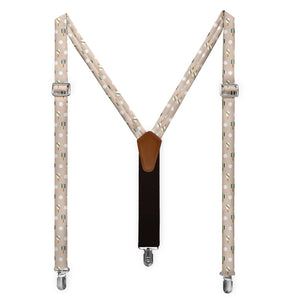 Printed fabric straps are 1-inch wide and secured to an elastic rear strap with vegan leather Y-back to allow the suspenders to move with you and extend as you bend. We use silver alligator pant clips that feature a special mechanism to ensure the suspenders clamp securely to pants.