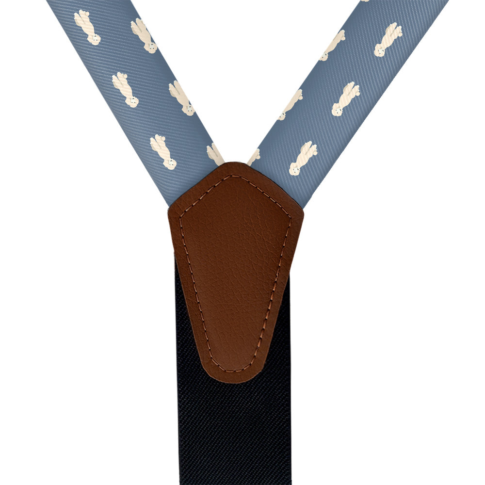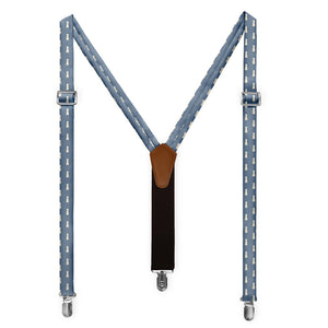 Printed fabric straps are 1-inch wide and secured to an elastic rear strap with vegan leather Y-back to allow the suspenders to move with you and extend as you bend. We use silver alligator pant clips that feature a special mechanism to ensure the suspenders clamp securely to pants.