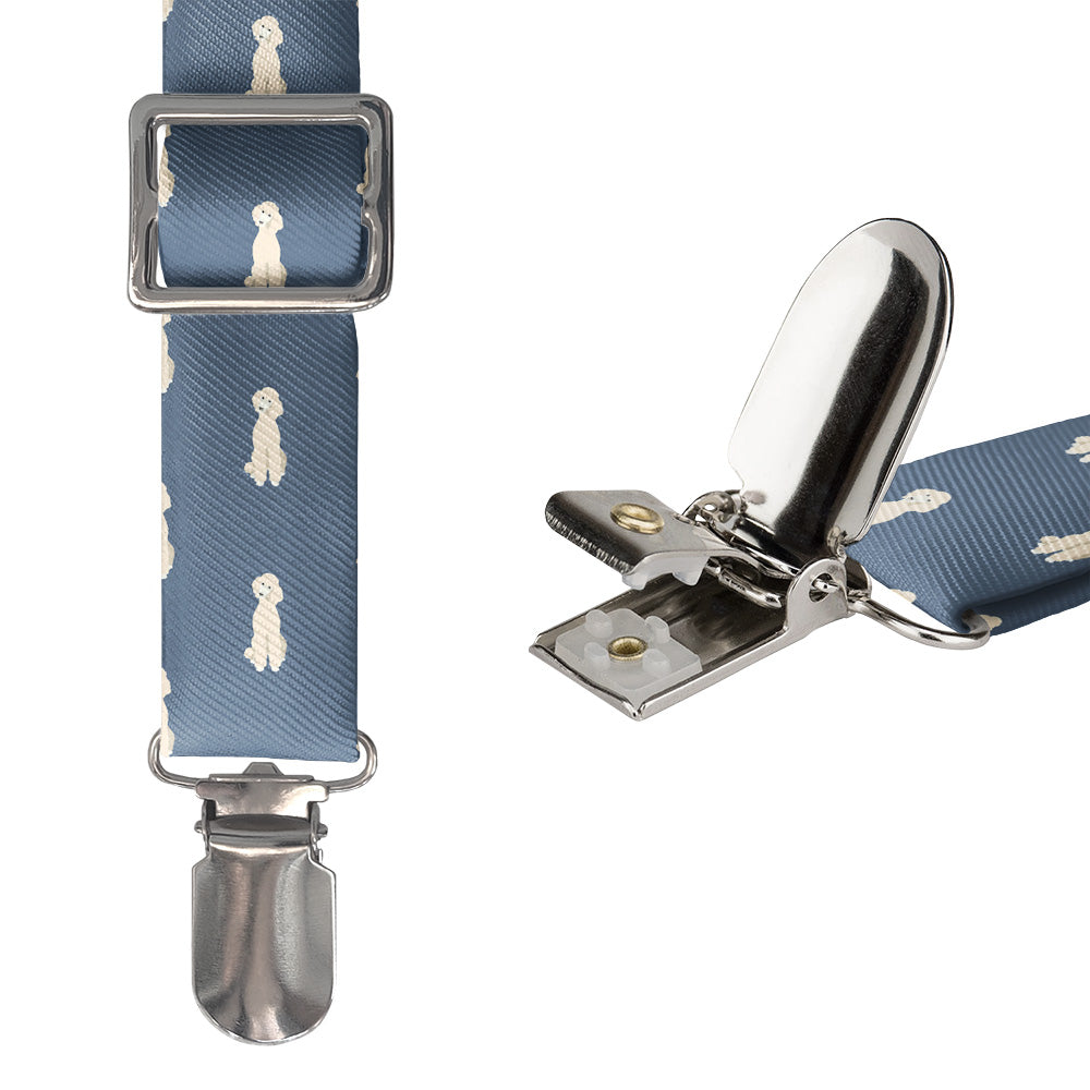 Poodle owners love their curly hair and friendly natures. The Poodle suspenders highlight the grace and beauty of these popular dogs.