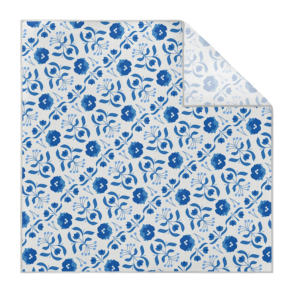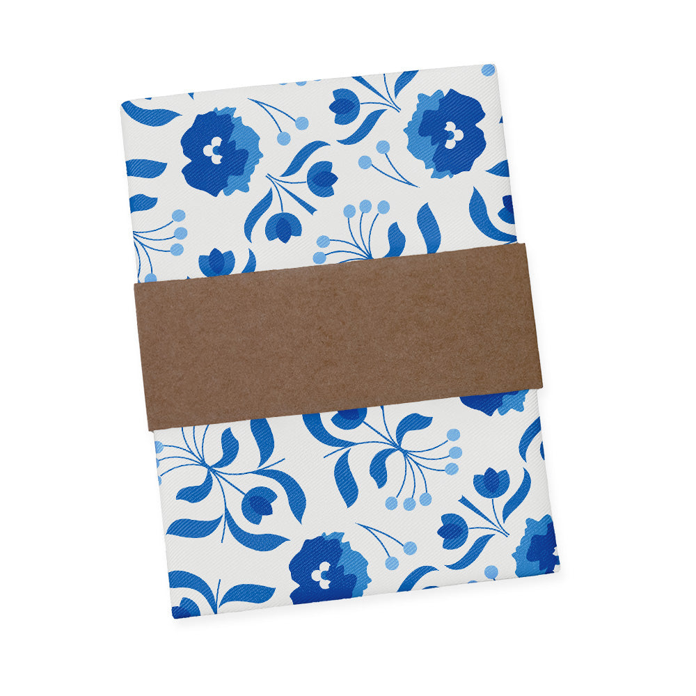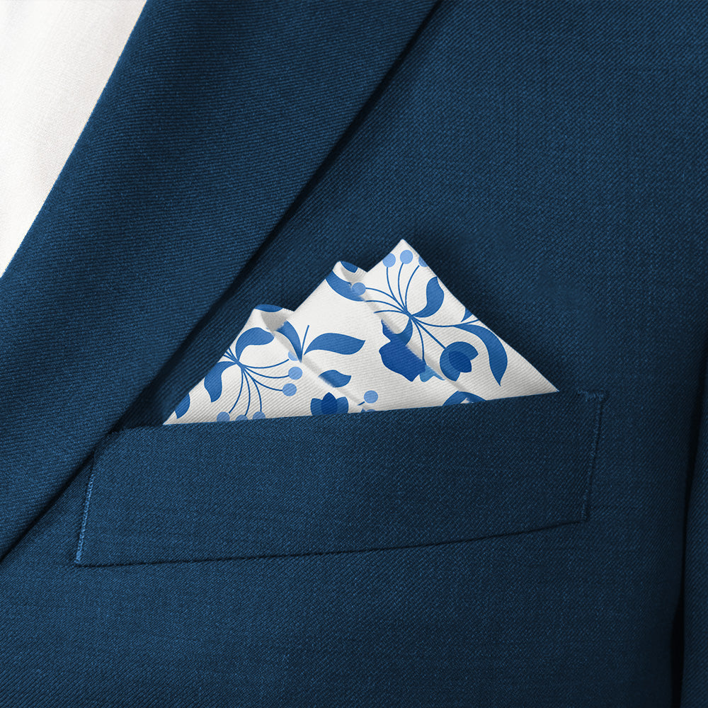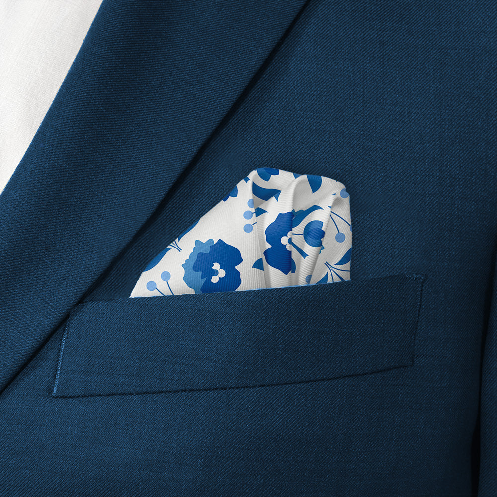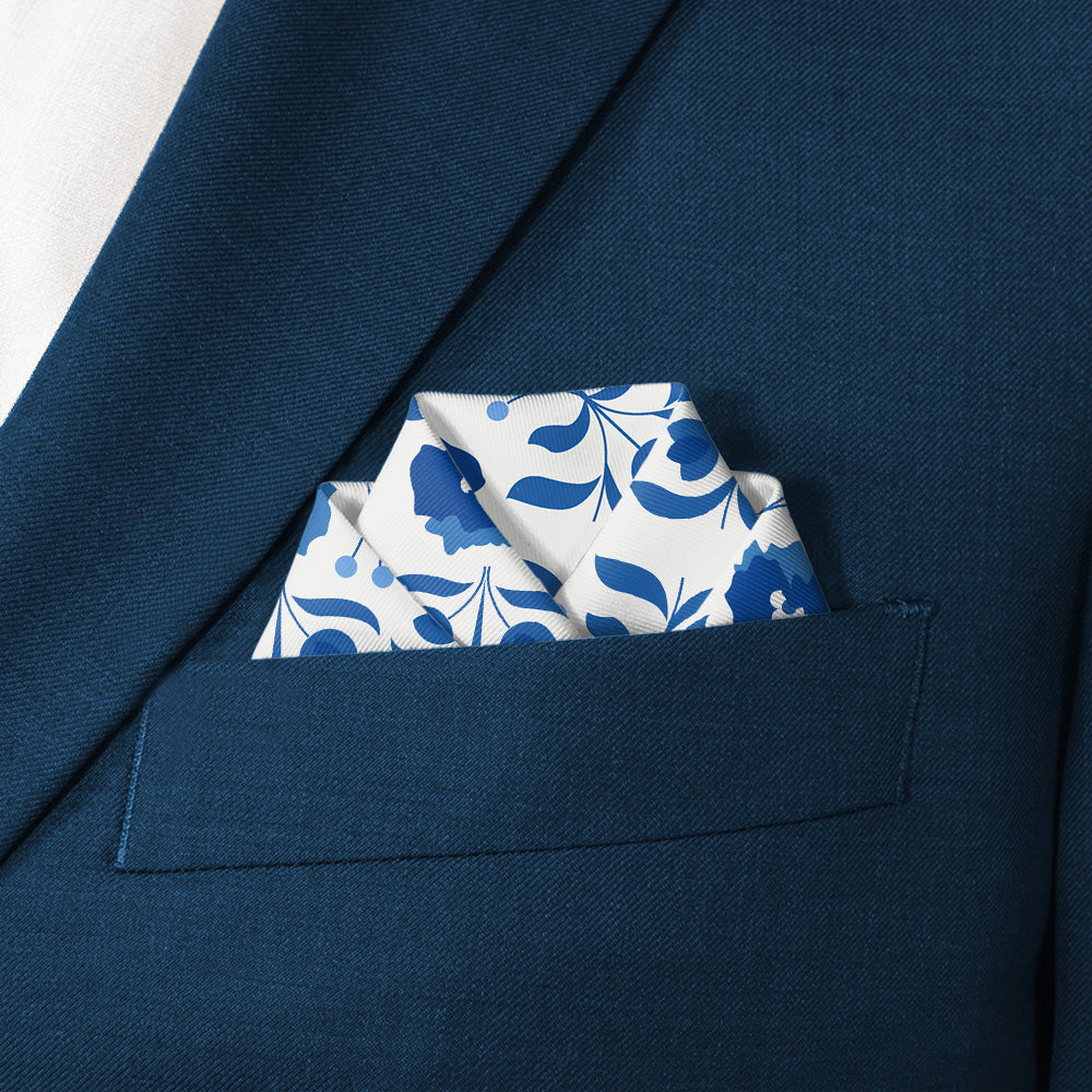We print all our pocket squares on a recycled twill fabric made from plastic bottles that we have milled specifically for our products. We print our pocket squares on a single side and finish the edges with a fine purl edge. The back side of the pocket square will be unprinted.
