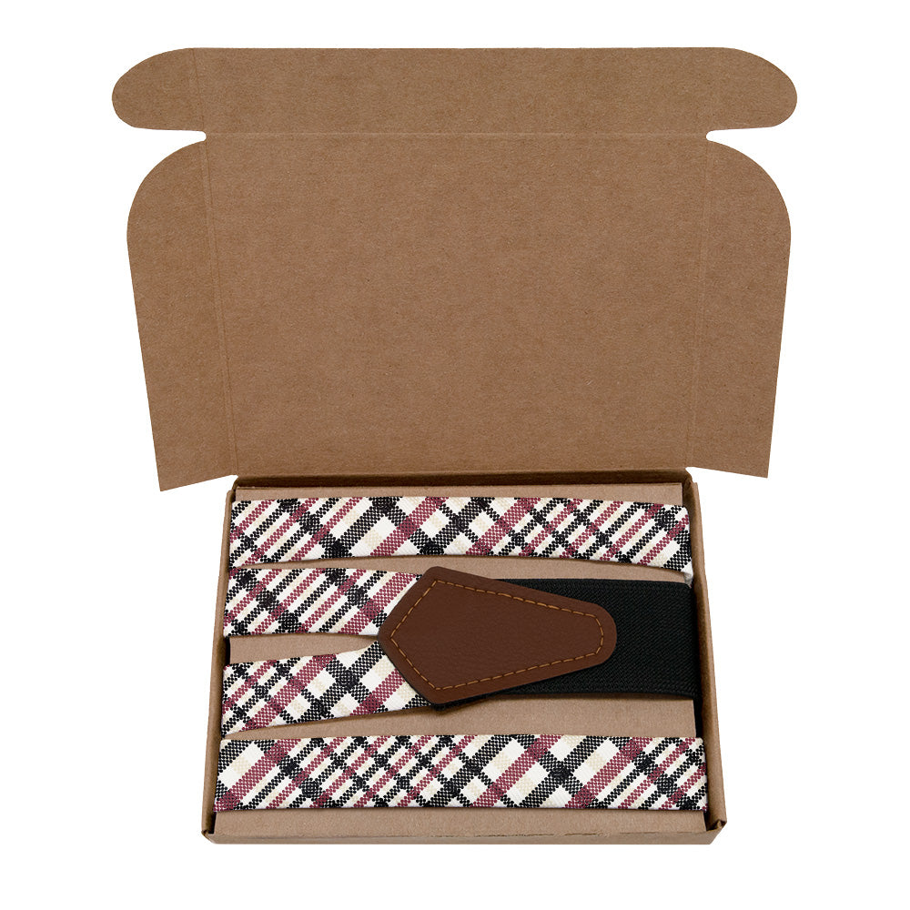 We've visually recreated the subtle texture of wool by using a dotted stippling effect to create this warm plaid pattern. The customizable Potter Plaid suspenders make it easy to visually tie together a wedding party wearing multiple shades, making it perfect for groomsman or groomswoman.