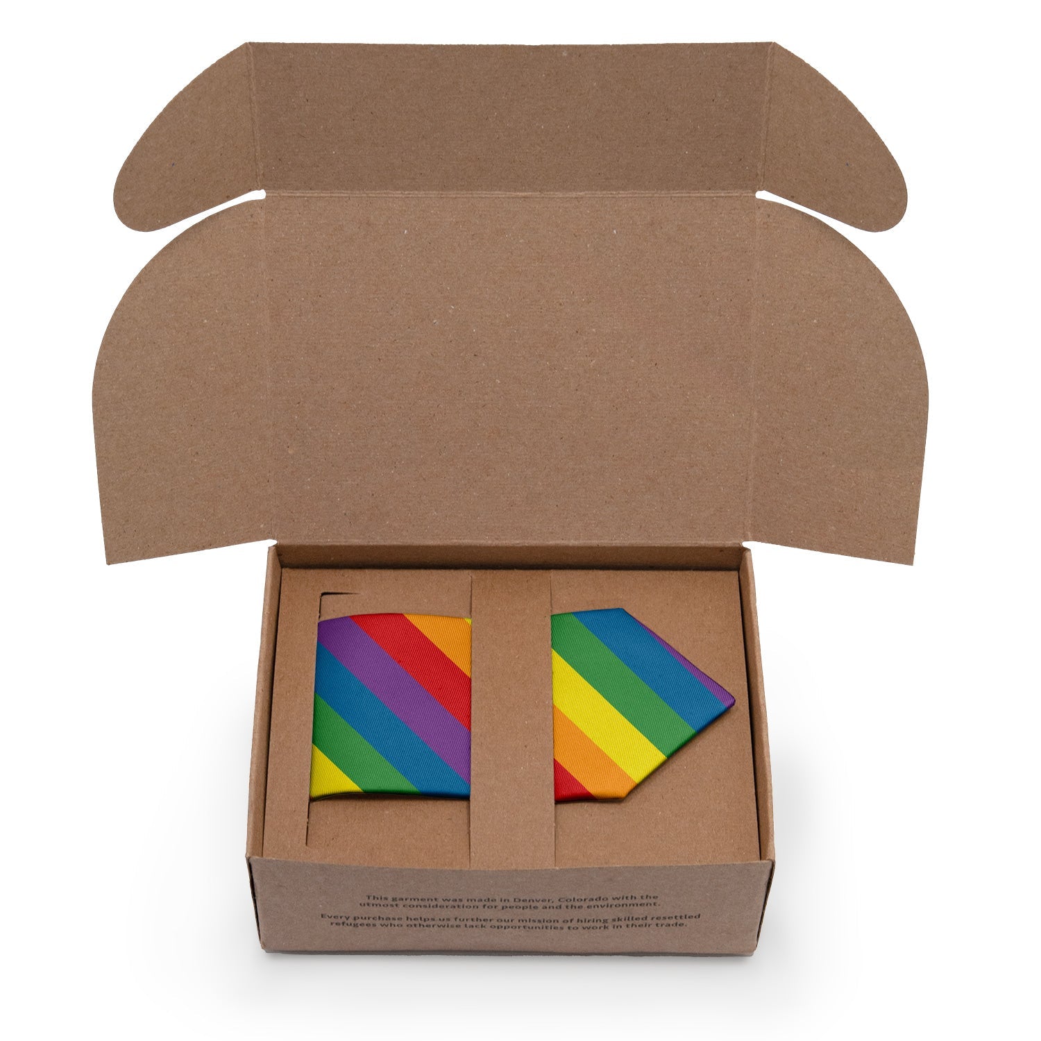This Pride Flag Necktie is the perfect way to celebrate and show your support for the LGBTQ+ community in style. Featuring a timeless rainbow stripe pattern and vivid colors, this necktie makes a statement without having to say a word.