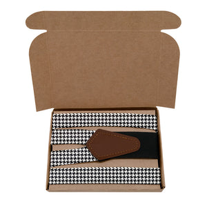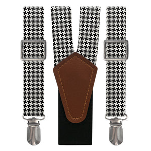 We've dubbed this variation of a houndstooth pattern as "Puppytooth" because it's a more youthful rendition of the classic menswear pattern. The Puppytooth suspenders can be customized in the two colors of your choice.