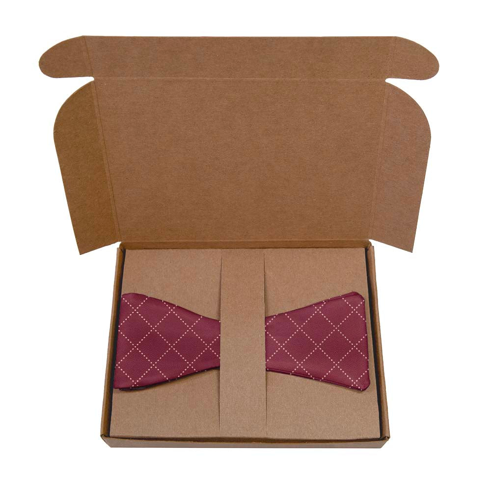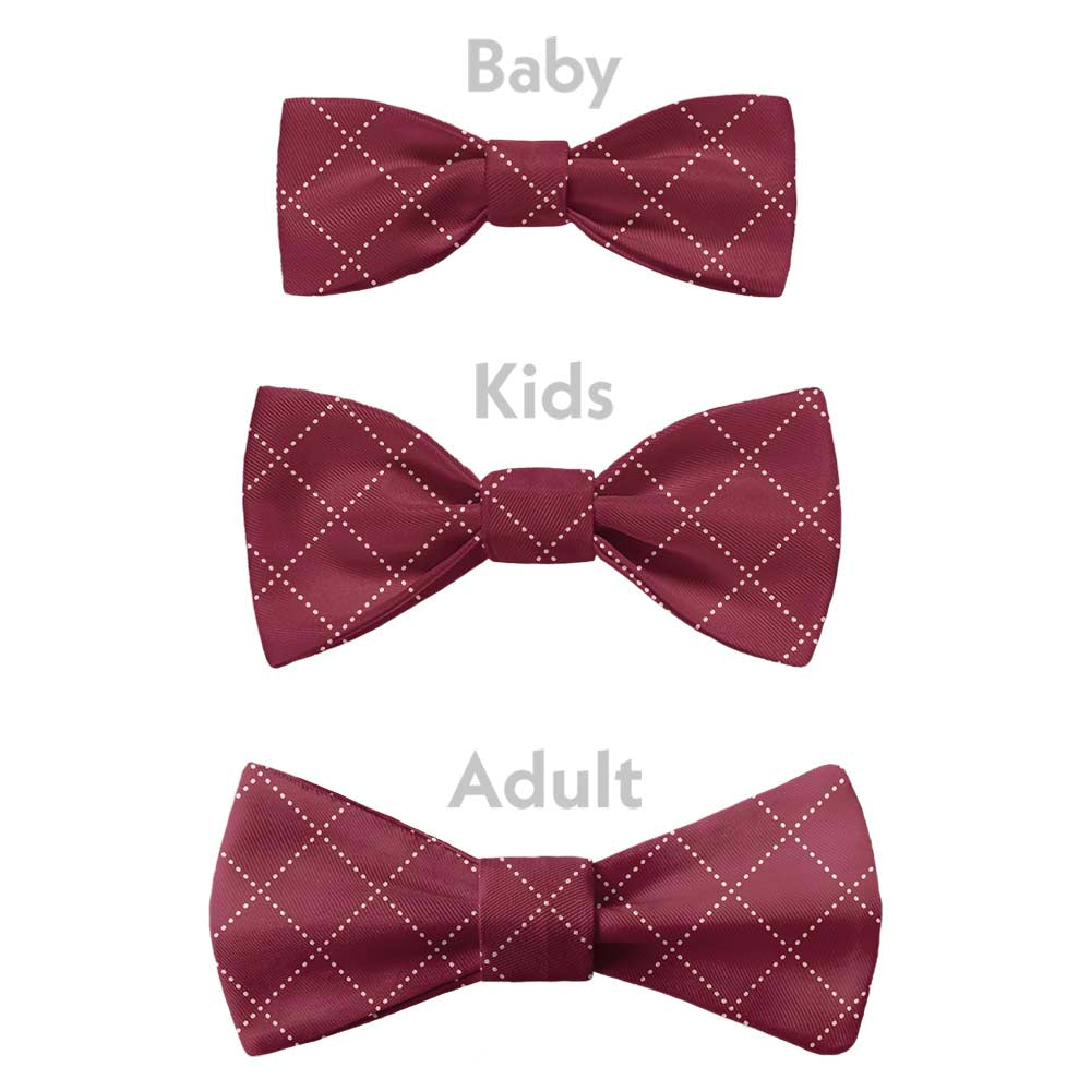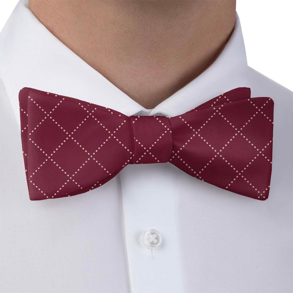Dotted lines weave together to create an understated diamond plaid with subtle visual texture. By customizing this simple, two-tone pattern, you can design your own bow tie to match any color scheme. The quilt-inspired pattern is a charming choice for wedding ties, especially rustic or country ceremonies.
