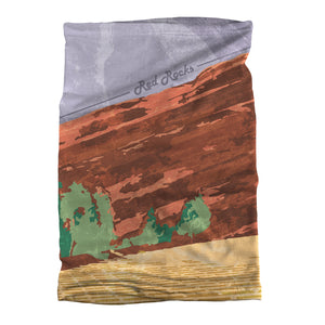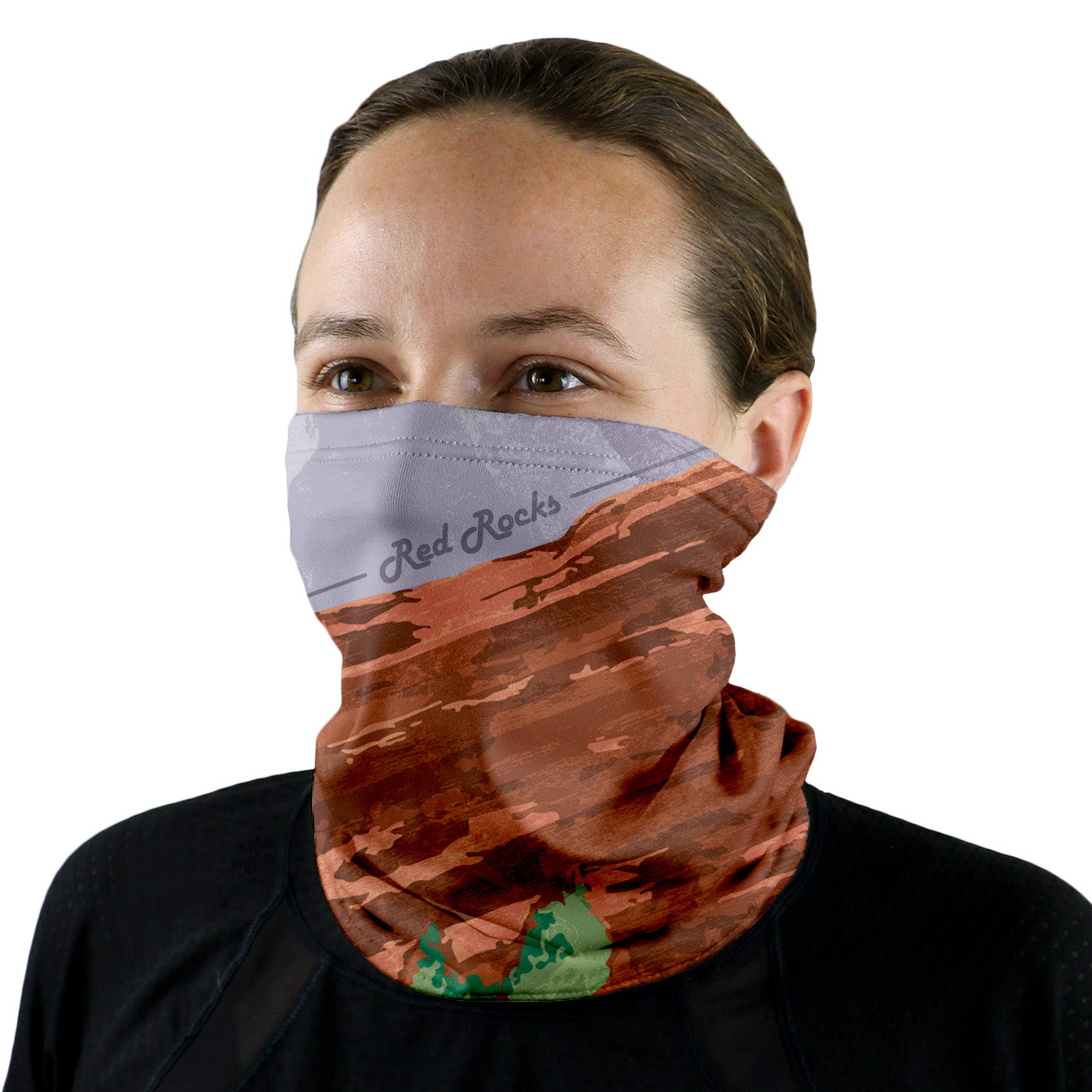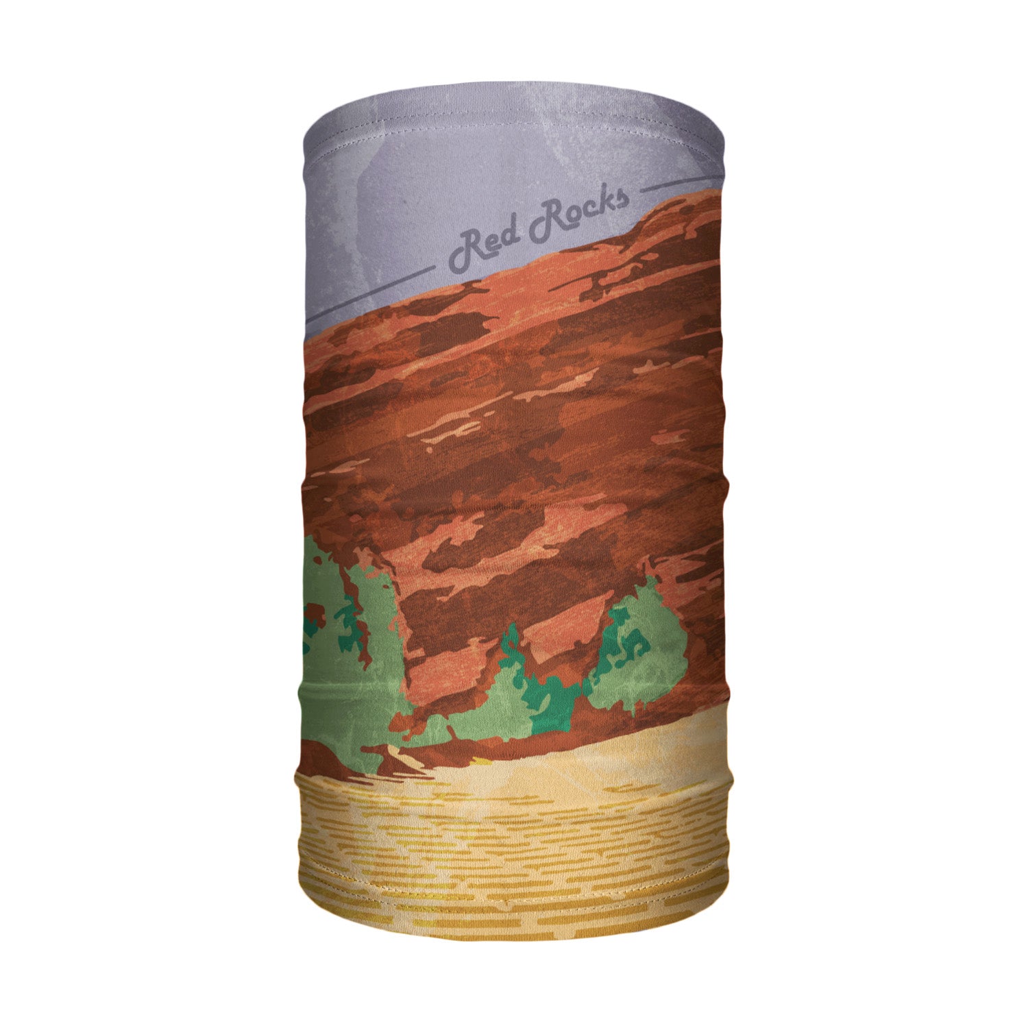 Rolling Stone magazine named Red Rocks the best amphitheater in America for good reason. The dramatic landscape and fabulous acoustics of Red Rocks have drawn in performers since 1906, including world-class musicians like The Beatles, Jimi Hendrix, The Grateful Dead, and The Rolling Stones. Music lovers will instantly recognize the iconic red rock on this neck gaiter.