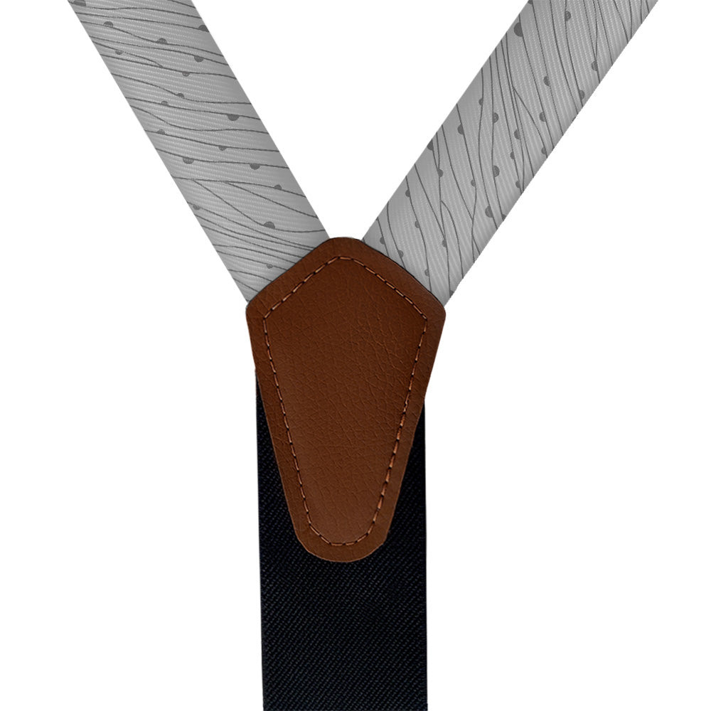 Printed fabric straps are 1-inch wide and secured to an elastic rear strap with vegan leather Y-back to allow the suspenders to move with you and extend as you bend. We use silver alligator pant clips that feature a special mechanism to ensure the suspenders clamp securely to pants.