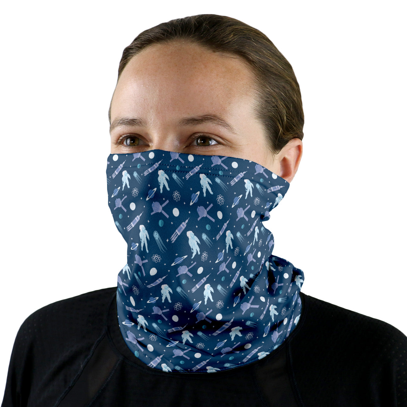 Blast off with the Rocket Man neck gaiter! This neck gaiter will keep you stylish and protected from the elements. Launch your fashion game to new heights Goes great with space boots and moon walks!