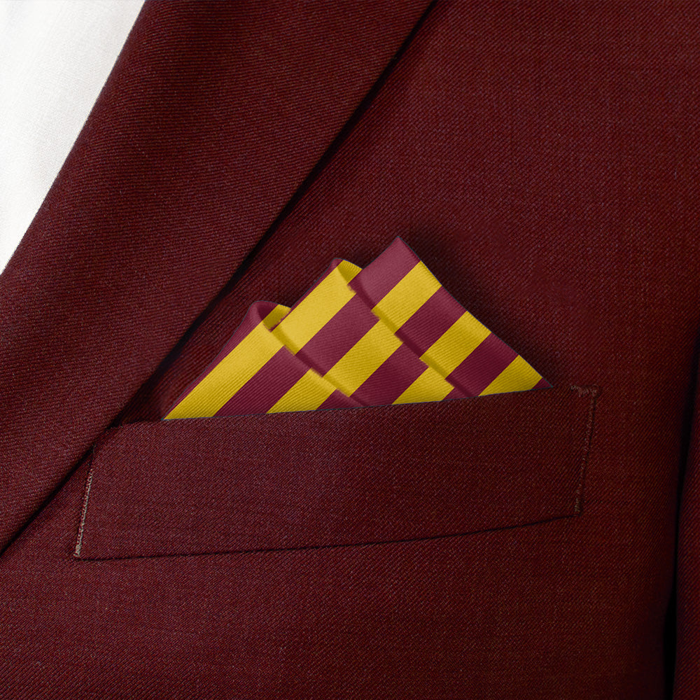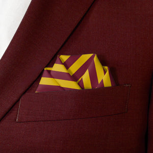 Traditional striped rugby league shirts inspired these sporty pocket squares. With a simple design composed of quarter-inch balanced stripes on the diagonal, the Rugby Stripe pattern is easy to customize.