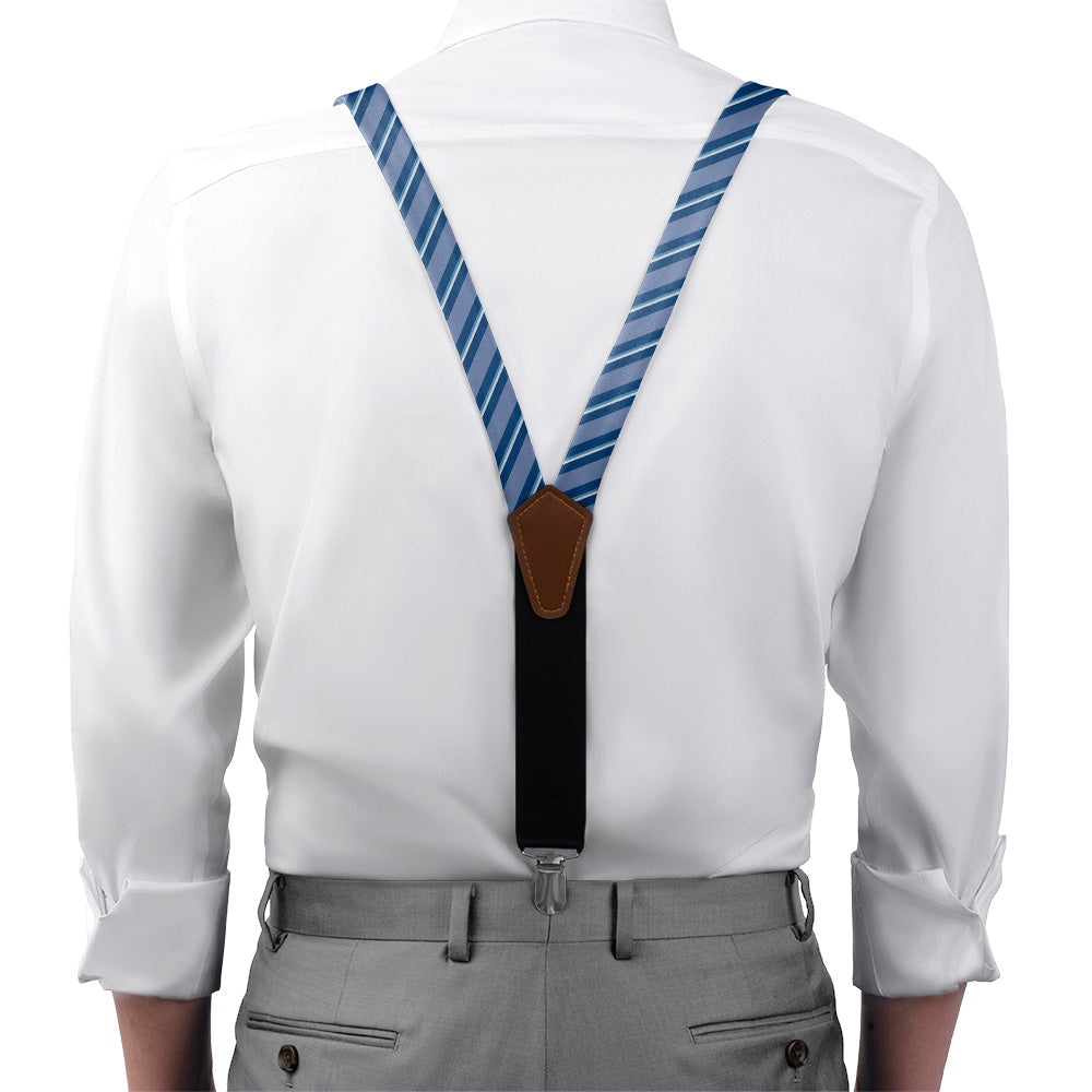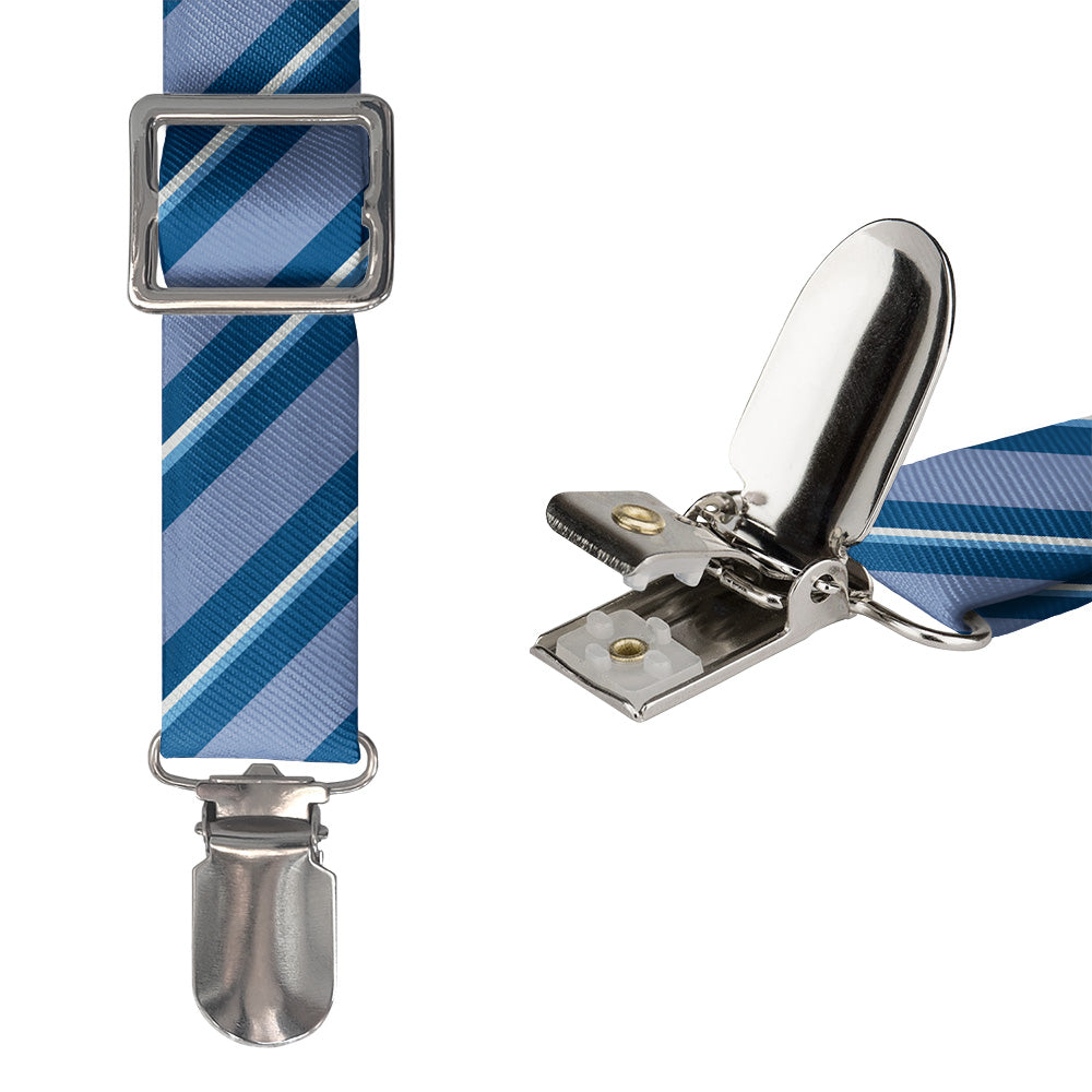 Printed fabric straps are 1-inch wide and secured to an elastic rear strap with vegan leather Y-back to allow the suspenders to move with you and extend as you bend. We use silver alligator pant clips that feature a special mechanism to ensure the suspenders clamp securely to pants.