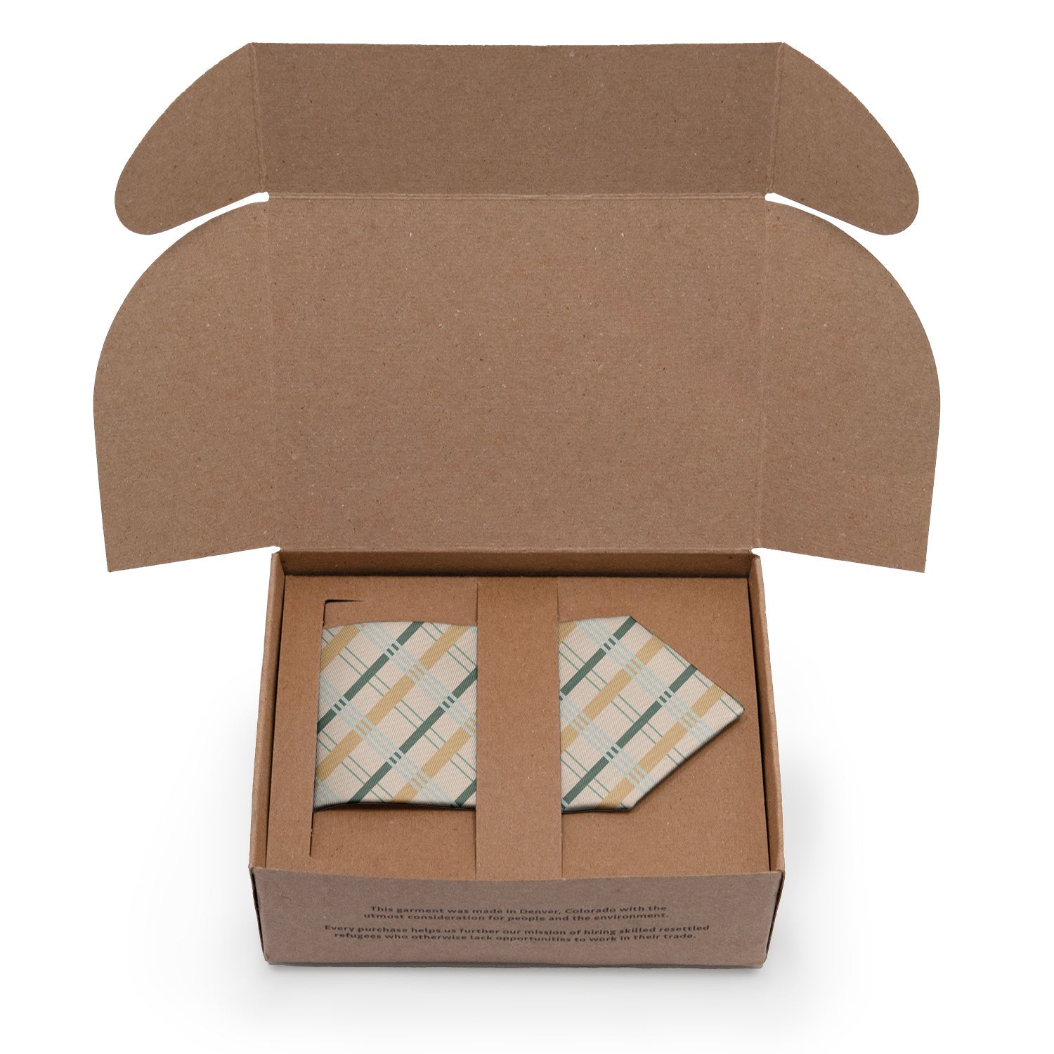 When you want a simple, modern plaid tie, you can't go wrong with the Savannah Plaid necktie. The colors shown pair wonderfully with spring pastels, or you can customize the plaid in any colors you choose.