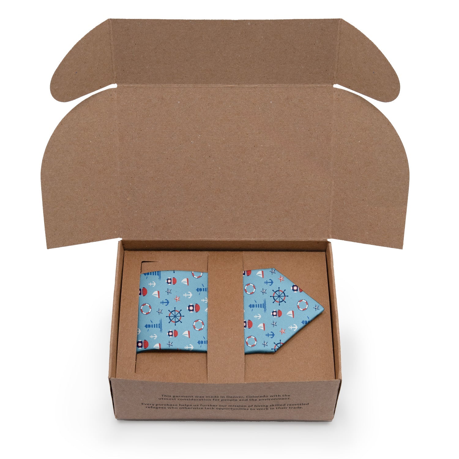 If you love the open waves, the Sea Faring necktie is for you. This lively nautical tie features anchors, diving helmets, lighthouses, and more!