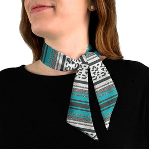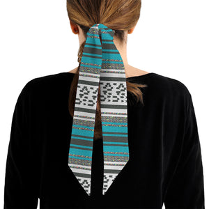 We use a high quality recycled polyester stretch poplin containing 86% recycled polyester, 14% spandex. Our hair scarves have a double-sided design with tapered ends.