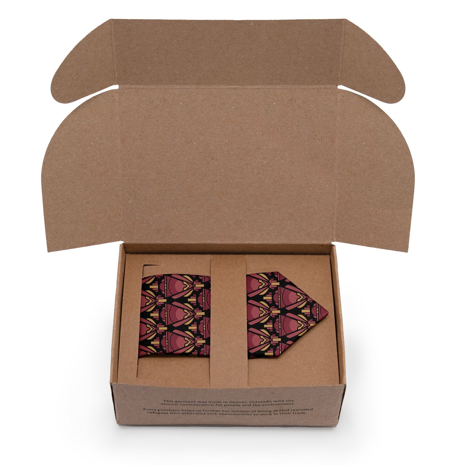 We print all our neckties on a high quality twill fabric made from recycled plastic bottles that we have milled specifically for our ties. Our recycled poly twill fabric has the soft sheen and feel of a semi-matte silk.