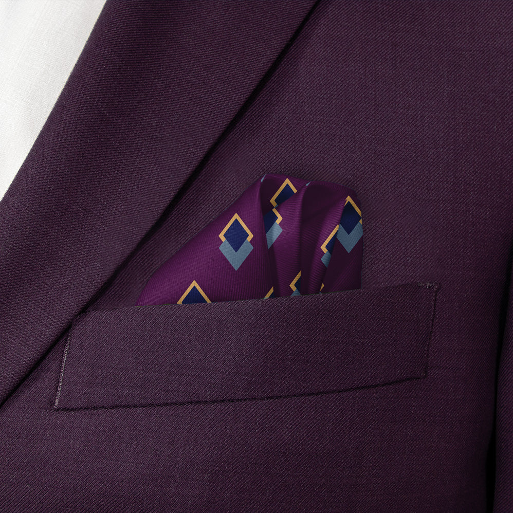 We print all our pocket squares on a recycled twill fabric made from plastic bottles that we have milled specifically for our products. We print our pocket squares on a single side and finish the edges with a fine purl edge. The back side of the pocket square will be unprinted.