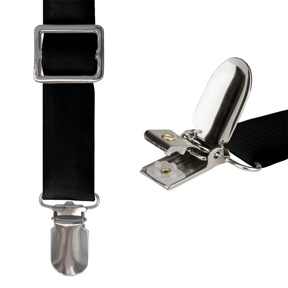 Keep things classy with this simple solid black suspenders. Perfect for formal occasions or even with a tuxedo.