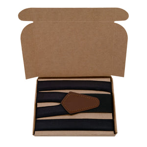 All suspenders are dry clean only. We recommend dry cleaners that don't use "perc" (perchloroethylene) solvents. Small spots may be gently dabbed with soapy water. If required, use an iron with a light touch on a synthetic setting only. Higher temperatures may result in color transfer or melting.