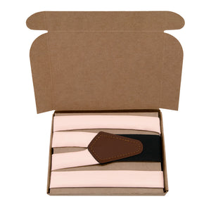 Solid blush pink suspenders are perfect for spring. Convey optimism, youth, and romance in the KT Blush Pink suspenders.