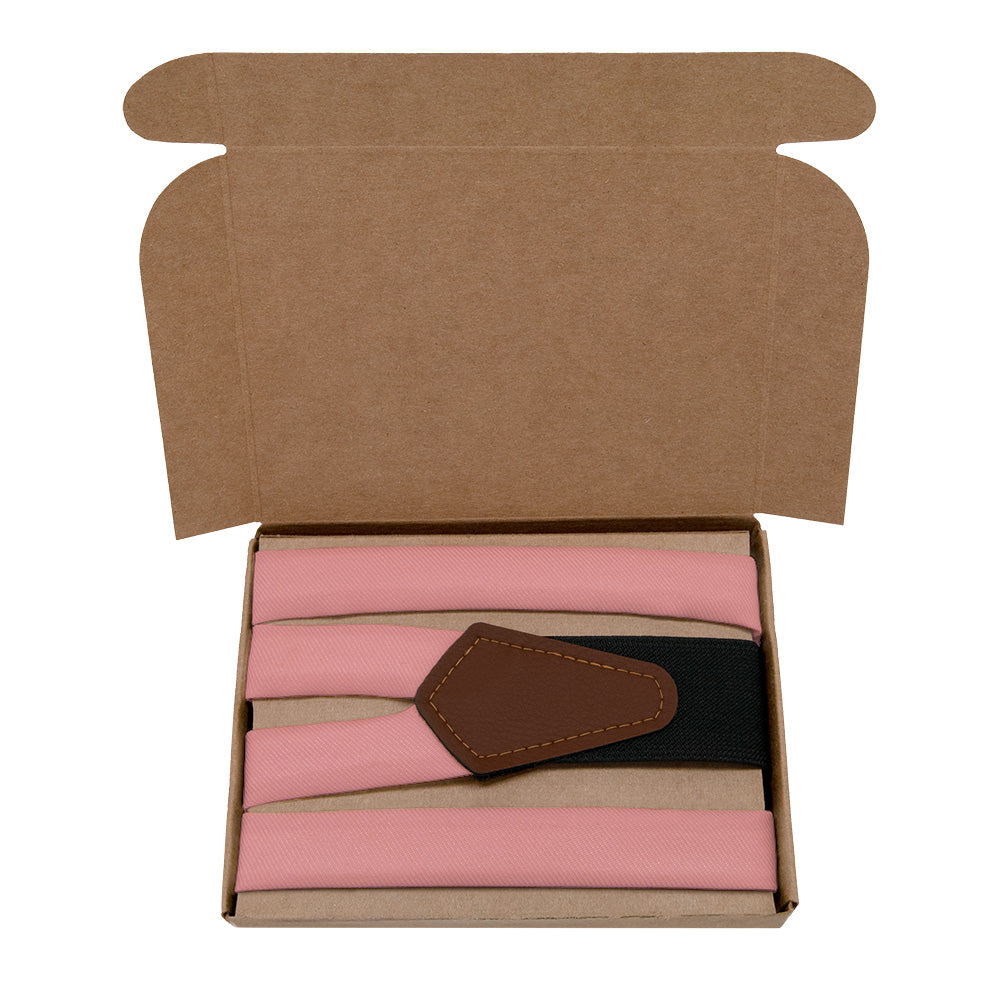 KT Dusty Pink suspenders are a spring favorite. A quieter and more mature take on fun and flirty pink, these solid dusty pink suspenders are great for work or pleasure.