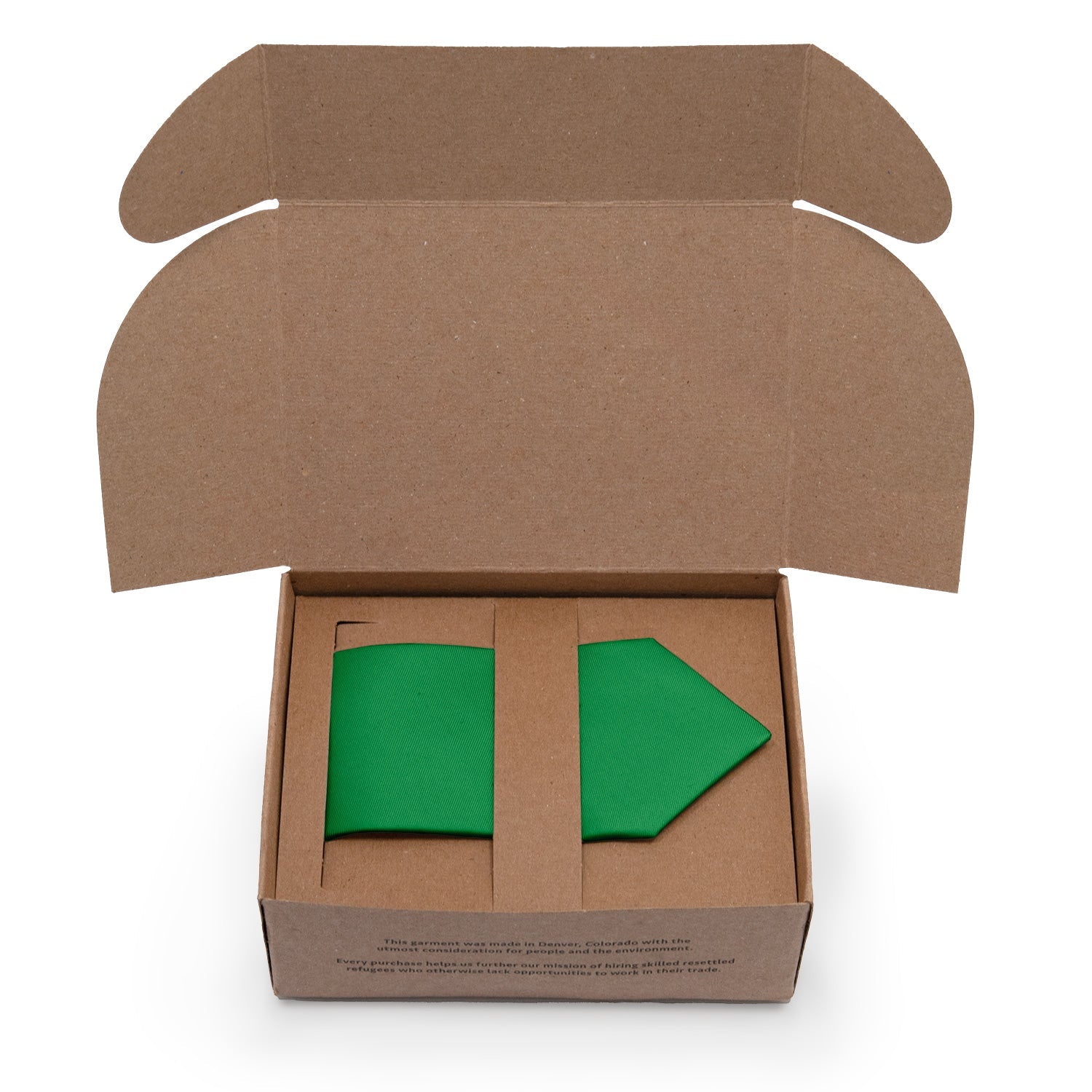 A solid green necktie conveys growth, adventure, and vitality. The KT Green is especially great for outdoor events in spring and summer.