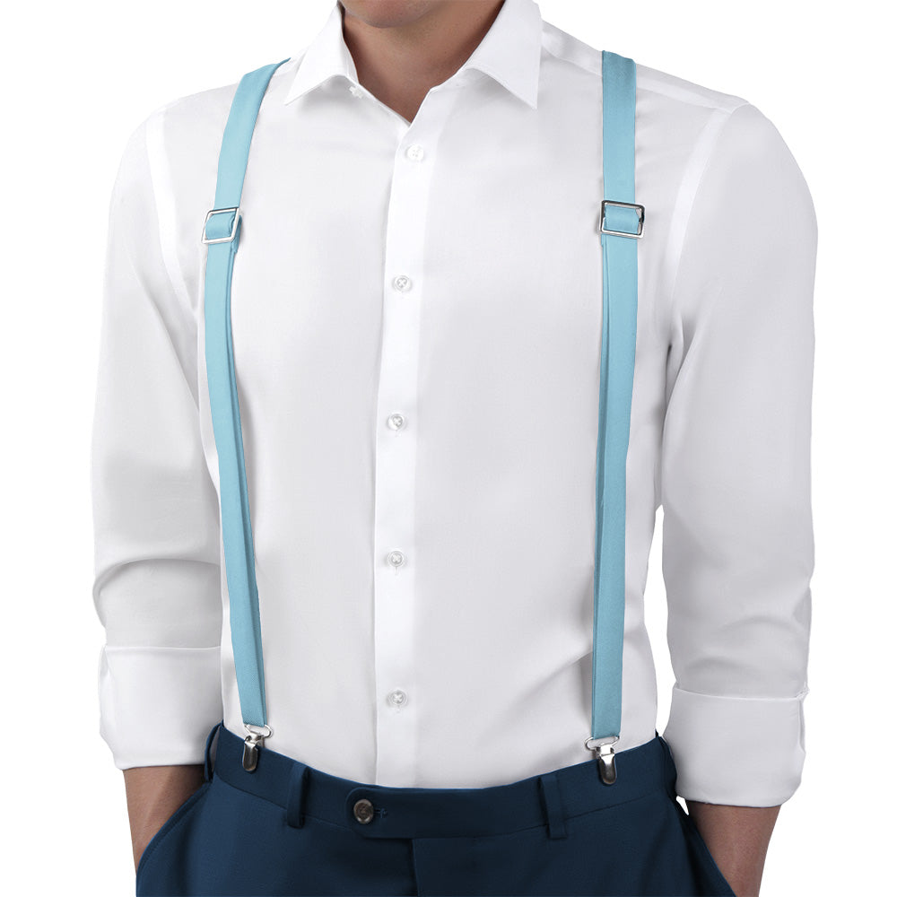 The KT Light Blue suspenders are perfect for springtime. These solid light blue suspenders are a gentle robin's egg blue, conveying freshness and freedom.