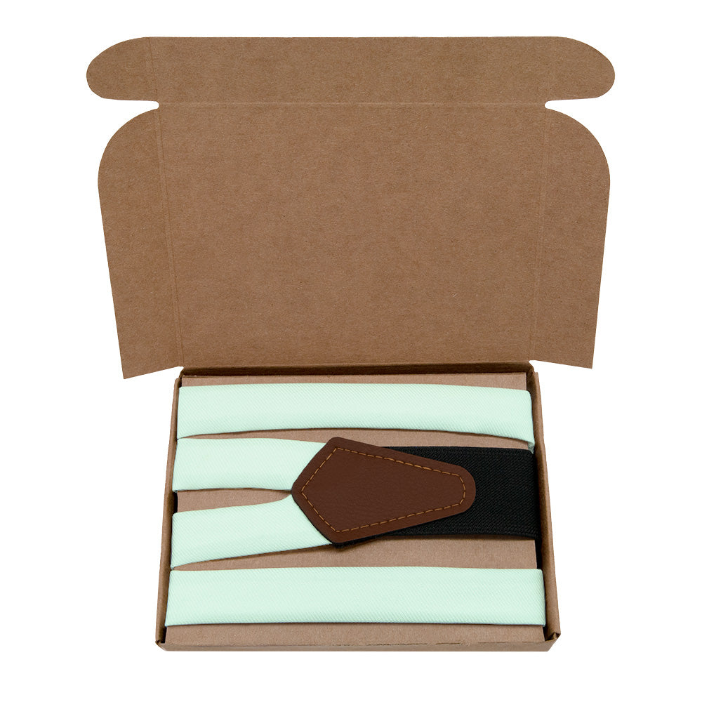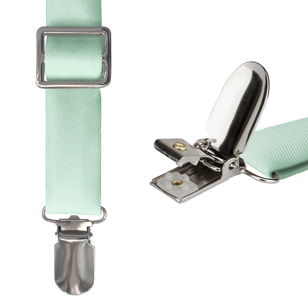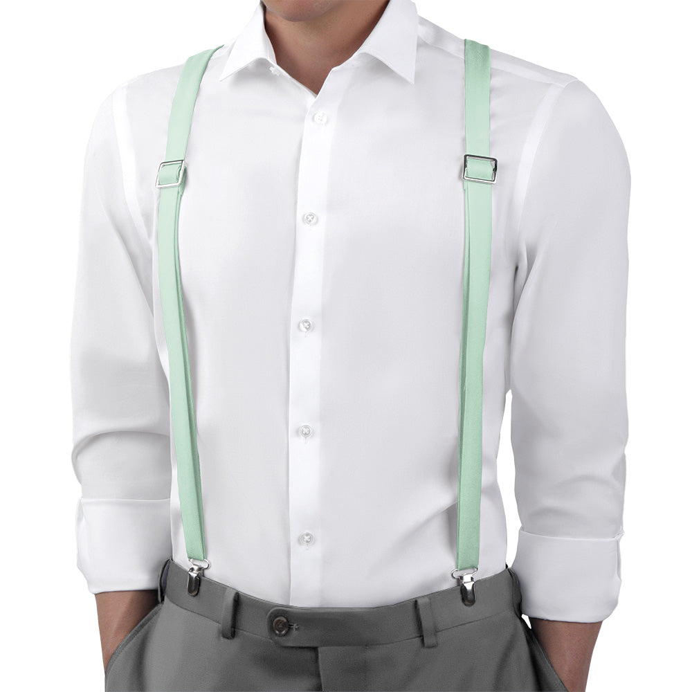 The pastel hues of the KT Mint suspenders are perfect for spring. Solid mint suspenders feel charming, relaxing, and invigorating.