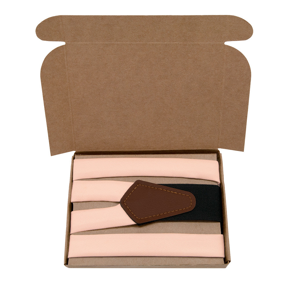 Solid peach colored suspenders feel pleasant and friendly. This muted shade in KT Peach is a subtle match for spring pastels.