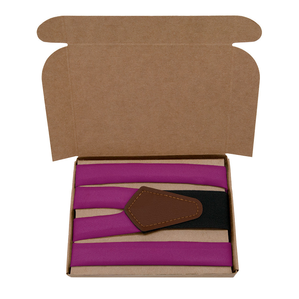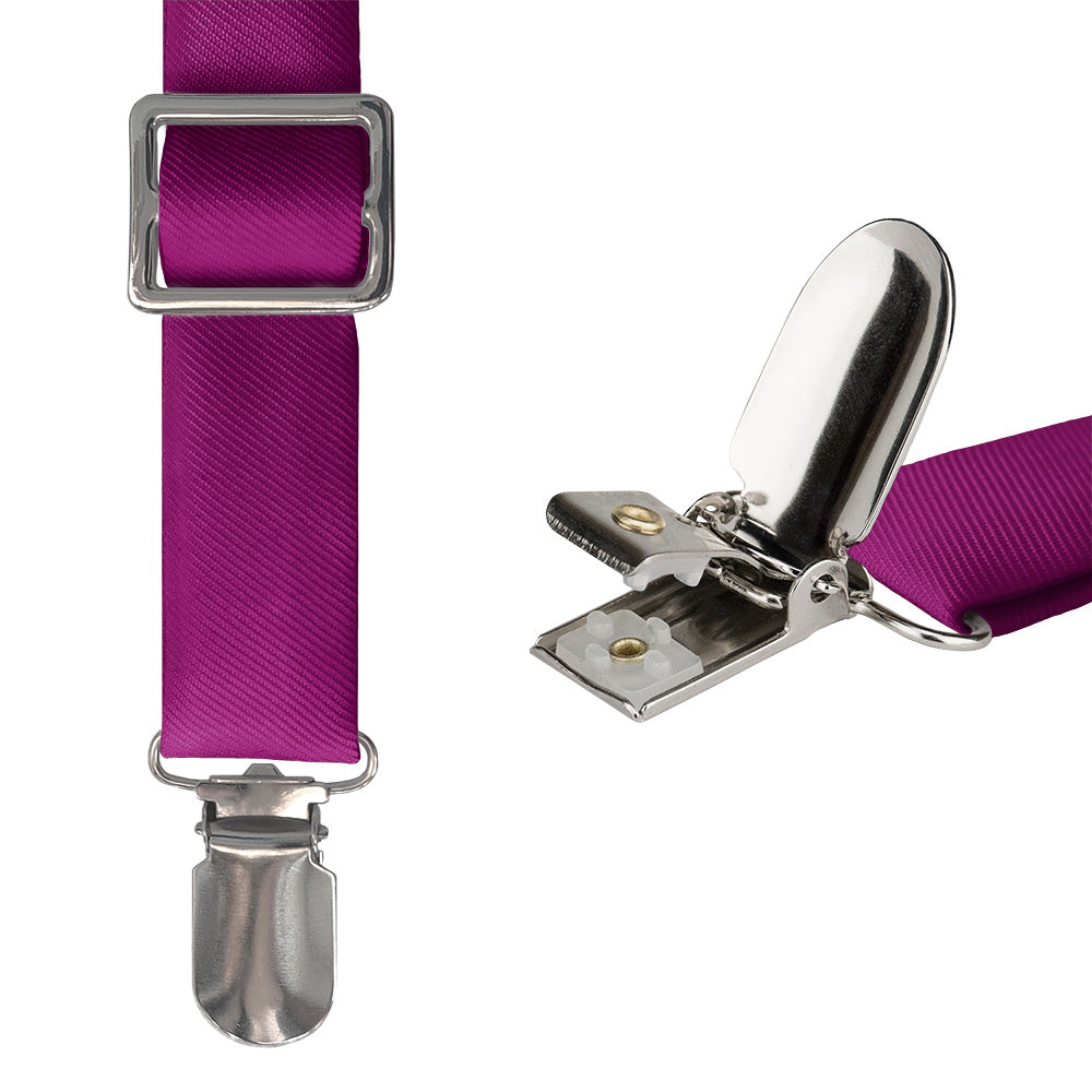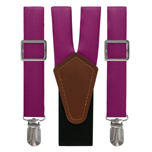 Solid plum suspenders radiate sophistication, creativity, and intelligence. The rich jewel tones of the KT Plum suspenders make it an especially eye-catching choice.