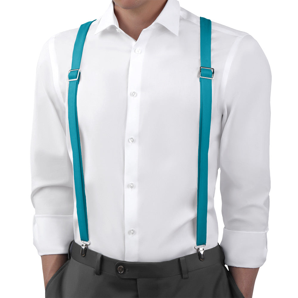 These solid teal suspenders in KT Teal feel as calm and inviting as a tropical sea. The KT Teal suspenders are especially appropriate for summer.