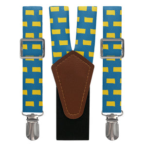 Printed fabric straps are 1-inch wide and secured to an elastic rear strap with vegan leather Y-back to allow the suspenders to move with you and extend as you bend. We use silver alligator pant clips that feature a special mechanism to ensure the suspenders clamp securely to pants.