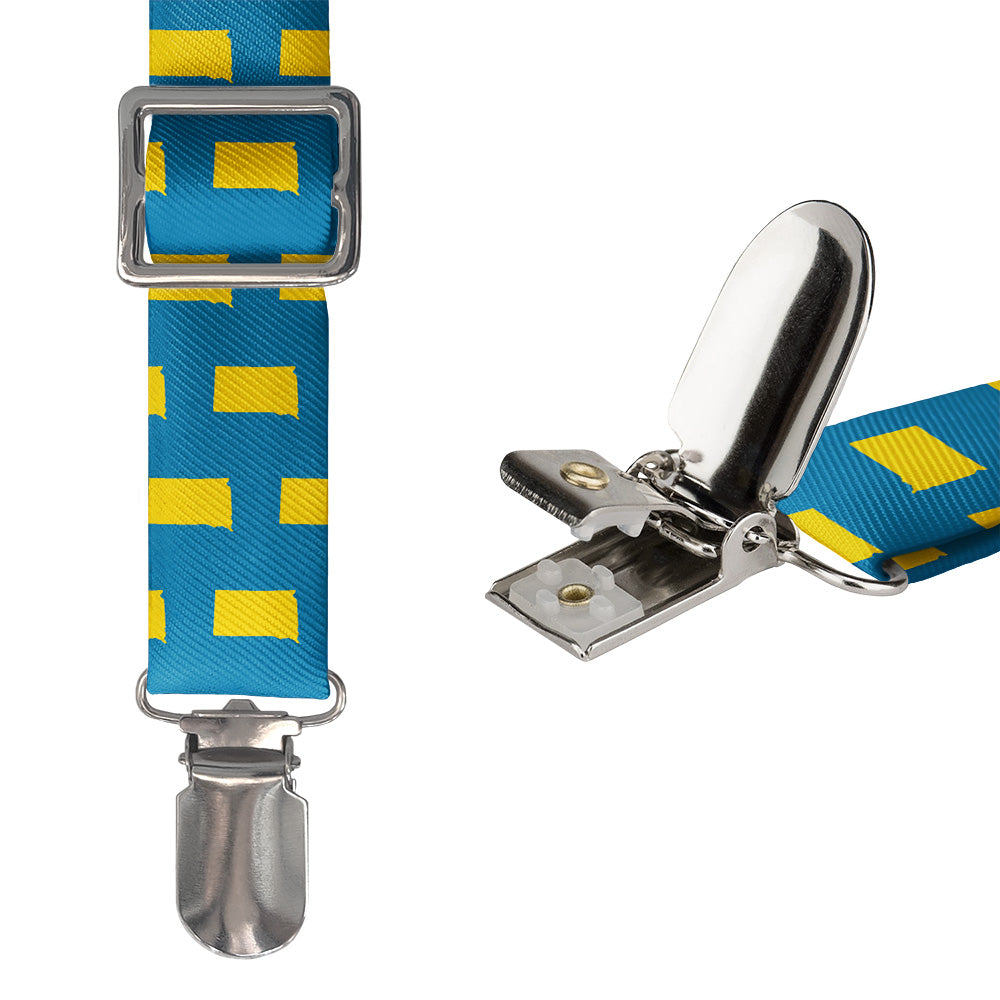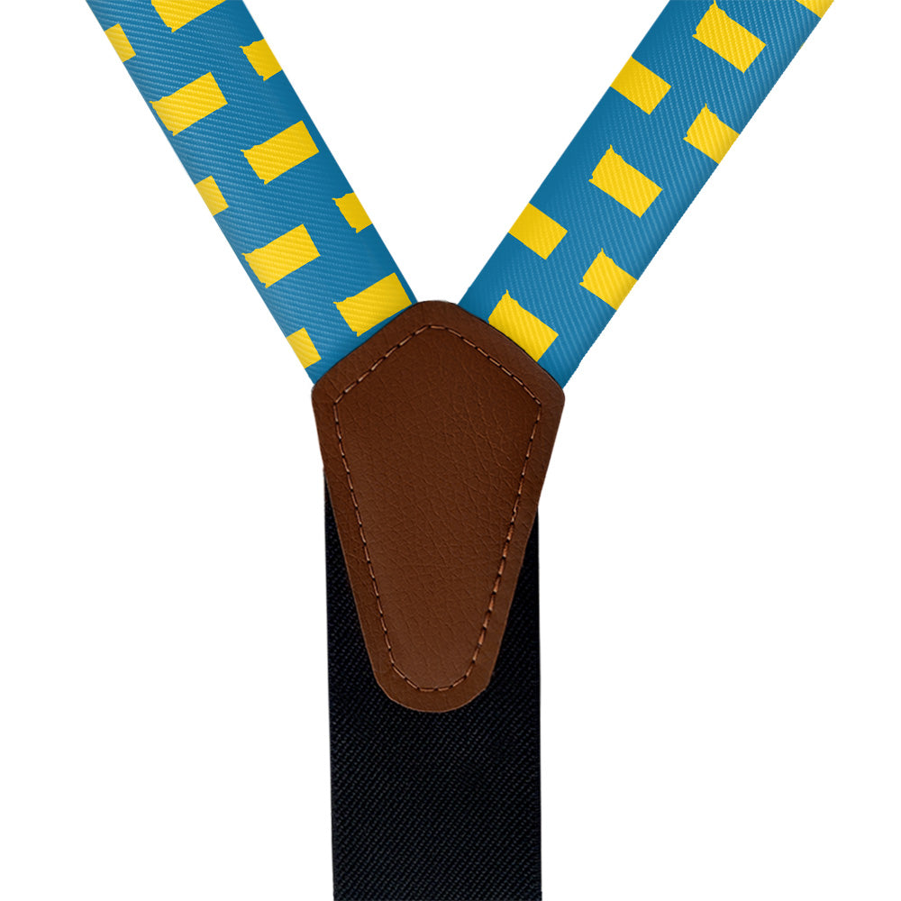 Show your South Dakota pride! These customizable South Dakota State Outline suspenders features a repeating outline of the Mount Rushmore State.