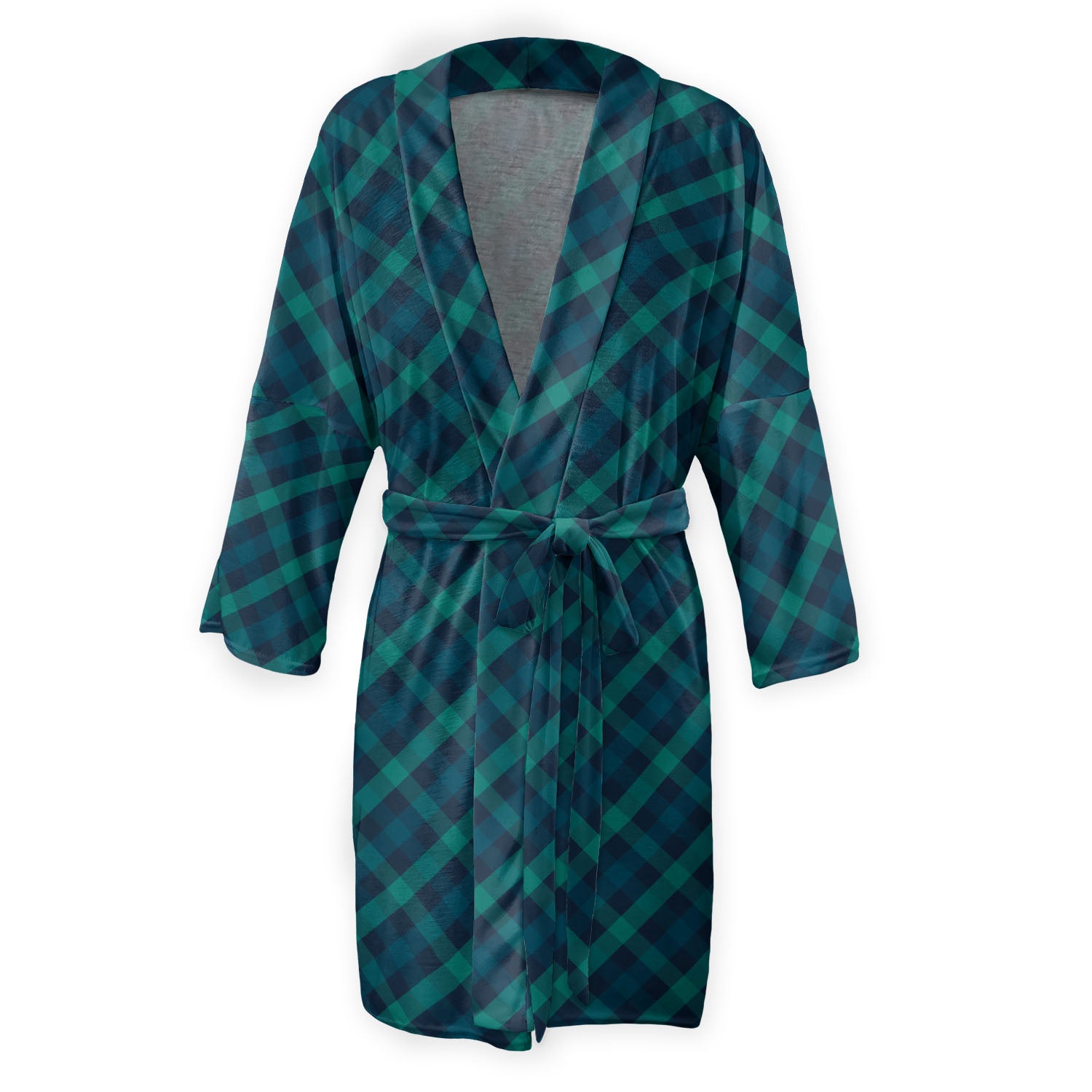 Get squared away with this stylish plaid robe. Hundreds of squares come together to create a modern plaid that works for any occassion. The Squared Away robe is a great addition to your closet. Our soft knit unisex robes are lightweight and designed to be casual and flattering with three quarter length sleeves and a kimono-style body with an open front and waist belt closure.