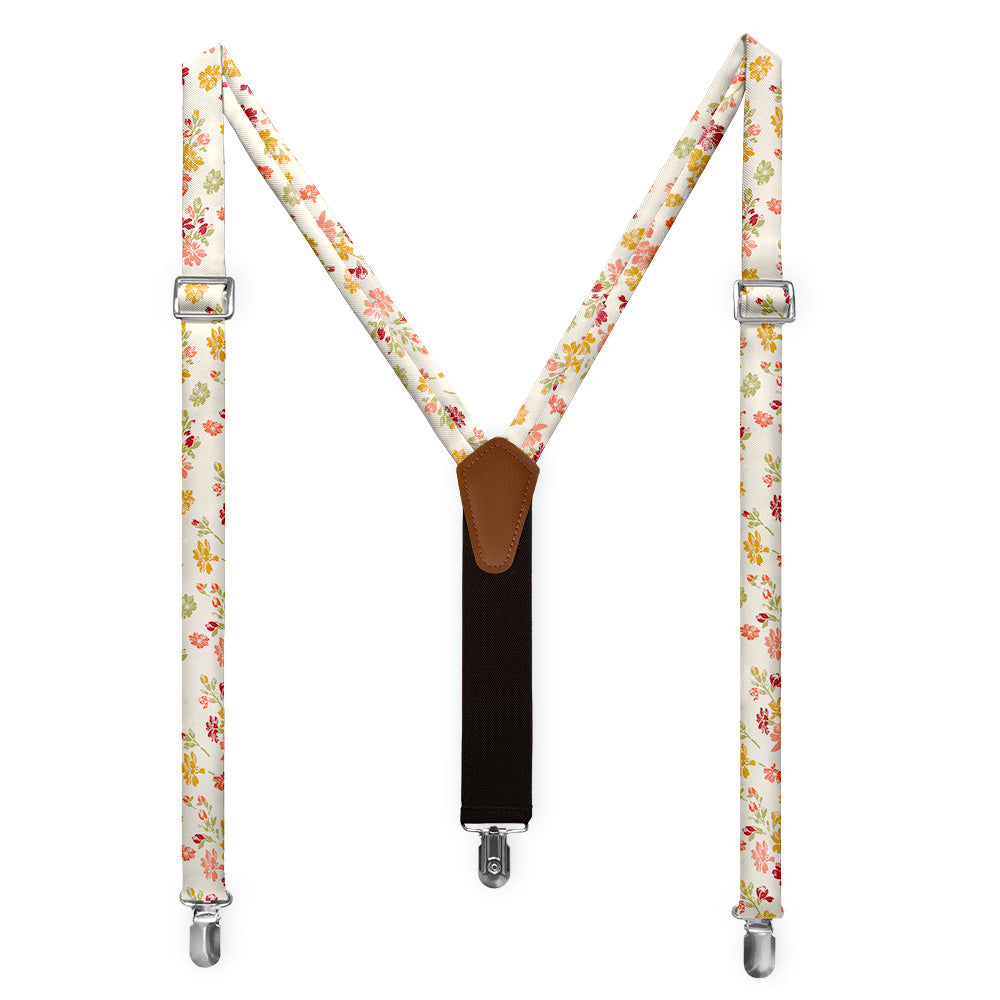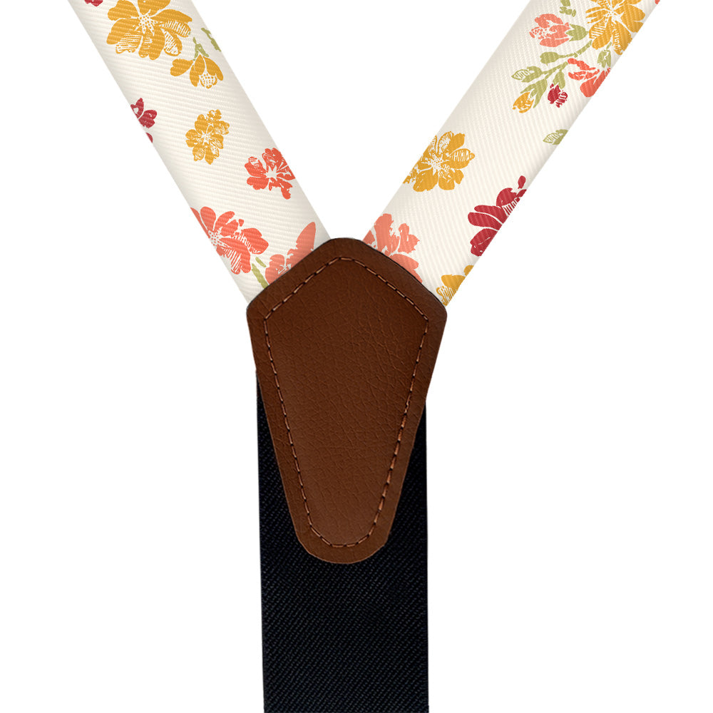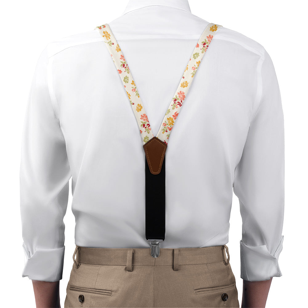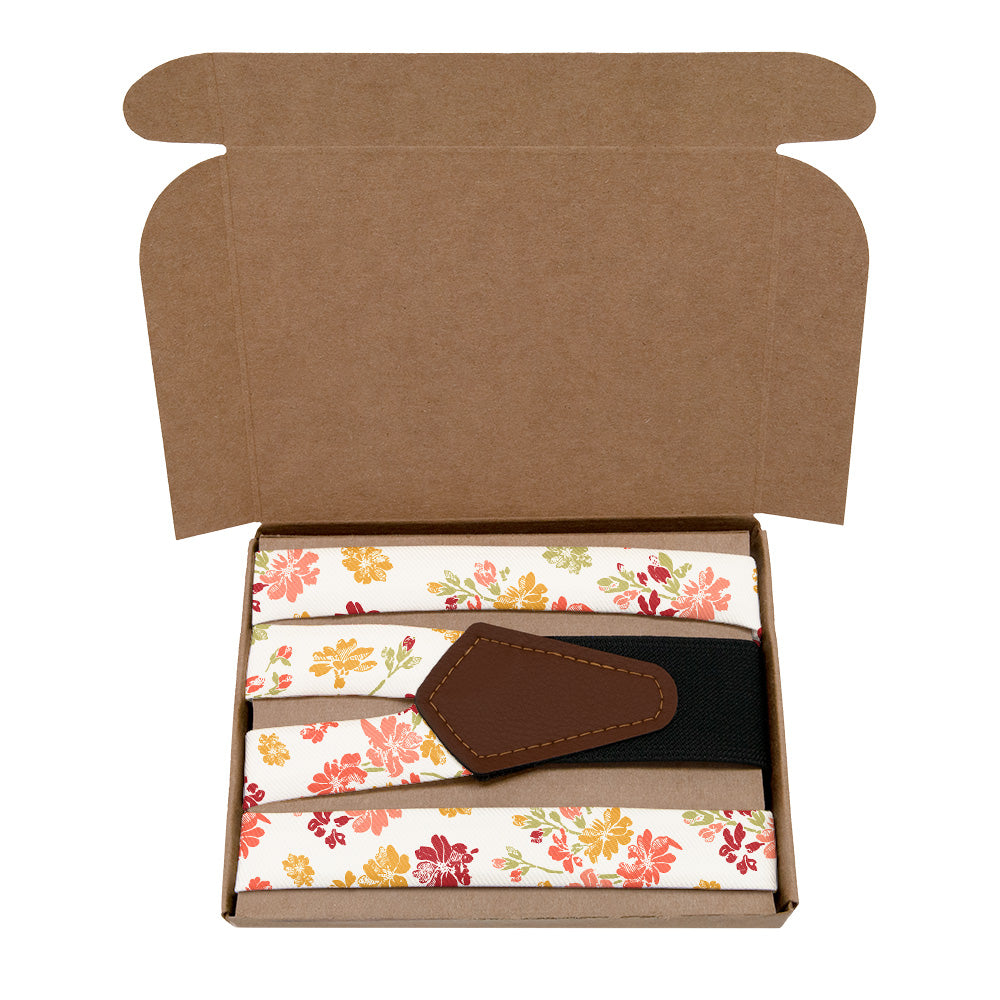 Printed fabric straps are 1-inch wide and secured to an elastic rear strap with vegan leather Y-back to allow the suspenders to move with you and extend as you bend. We use silver alligator pant clips that feature a special mechanism to ensure the suspenders clamp securely to pants.