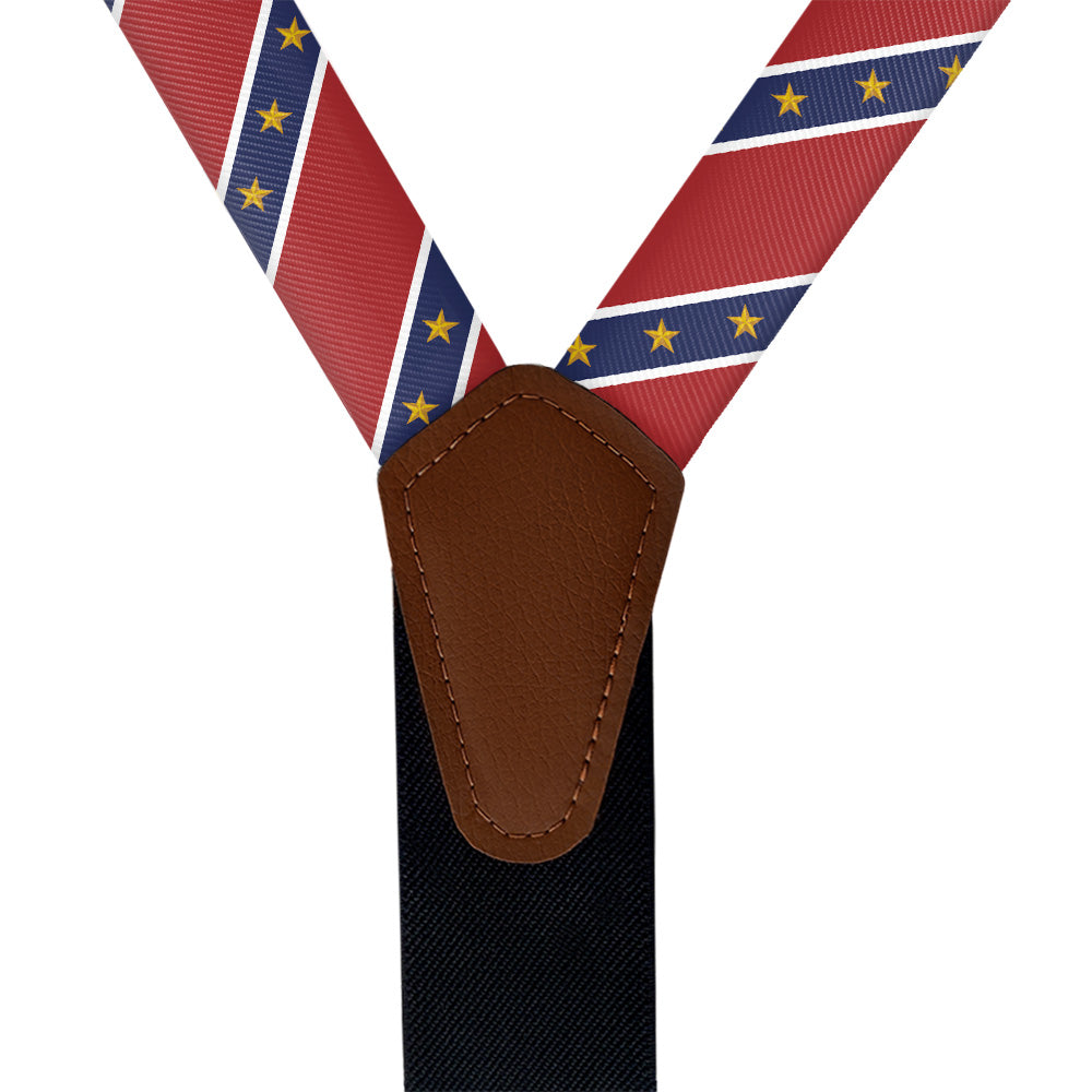 Printed fabric straps are 1-inch wide and secured to an elastic rear strap with vegan leather Y-back to allow the suspenders to move with you and extend as you bend. We use silver alligator pant clips that feature a special mechanism to ensure the suspenders clamp securely to pants.