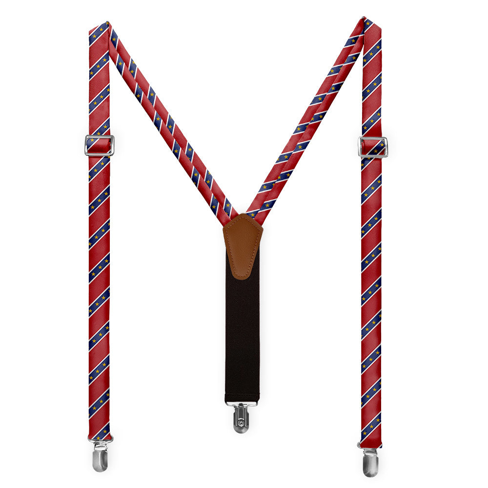 When you want to show your patriotism, look no further than these Stars and Stripes suspenders. Varying stripe widths give this patriotic necktie a modern, dynamic feel.