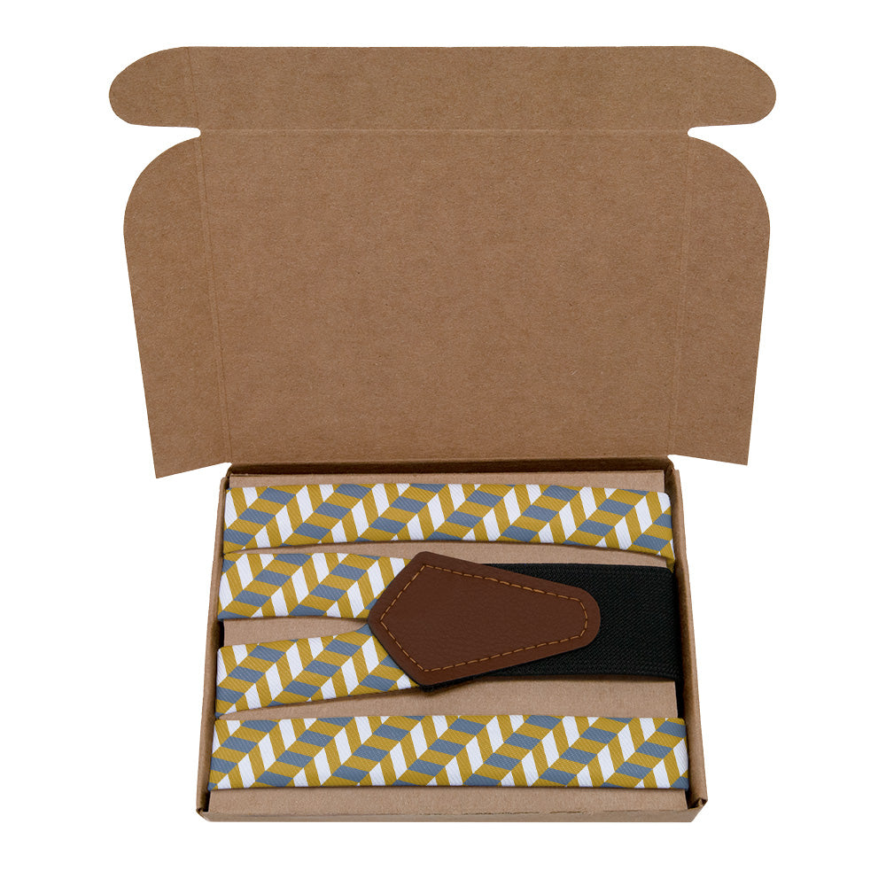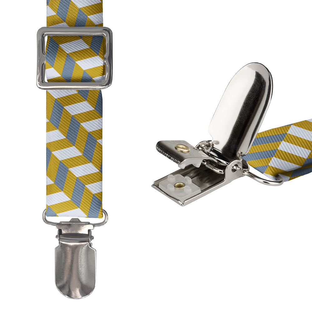 Step up in a big way with these optical illusion suspenders. The Steps Geometric necktie adds a fun element to any outfit thanks to the geometric stair step design. The Steps Geometric pattern is especially easy to customize in your own colors.