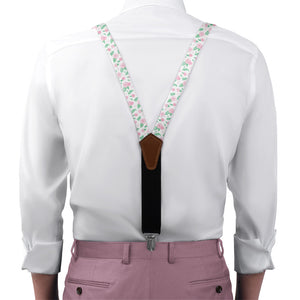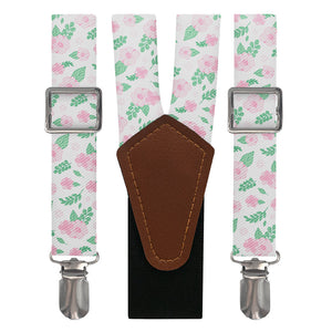 Printed fabric straps are 1-inch wide and secured to an elastic rear strap with vegan leather Y-back to allow the suspenders to move with you and extend as you bend. We use silver alligator pant clips that feature a special mechanism to ensure the suspenders clamp securely to pants.