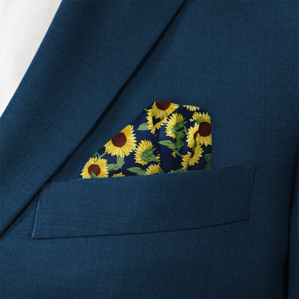 A field of vibrant sunflowers comes to life in this floral pocket square. Cheerful as a summer afternoon, the Sunflower Floral pocket square is sure to win a smile.