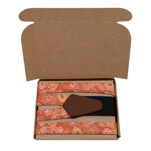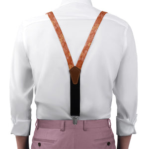 Printed fabric straps are 1-inch wide and secured to an elastic rear strap with vegan leather Y-back to allow the suspenders to move with you and extend as you bend. We use silver alligator pant clips that feature a special mechanism to ensure the suspenders clamp securely to pants.