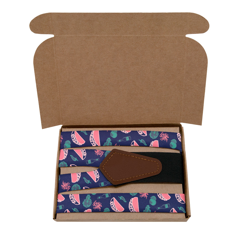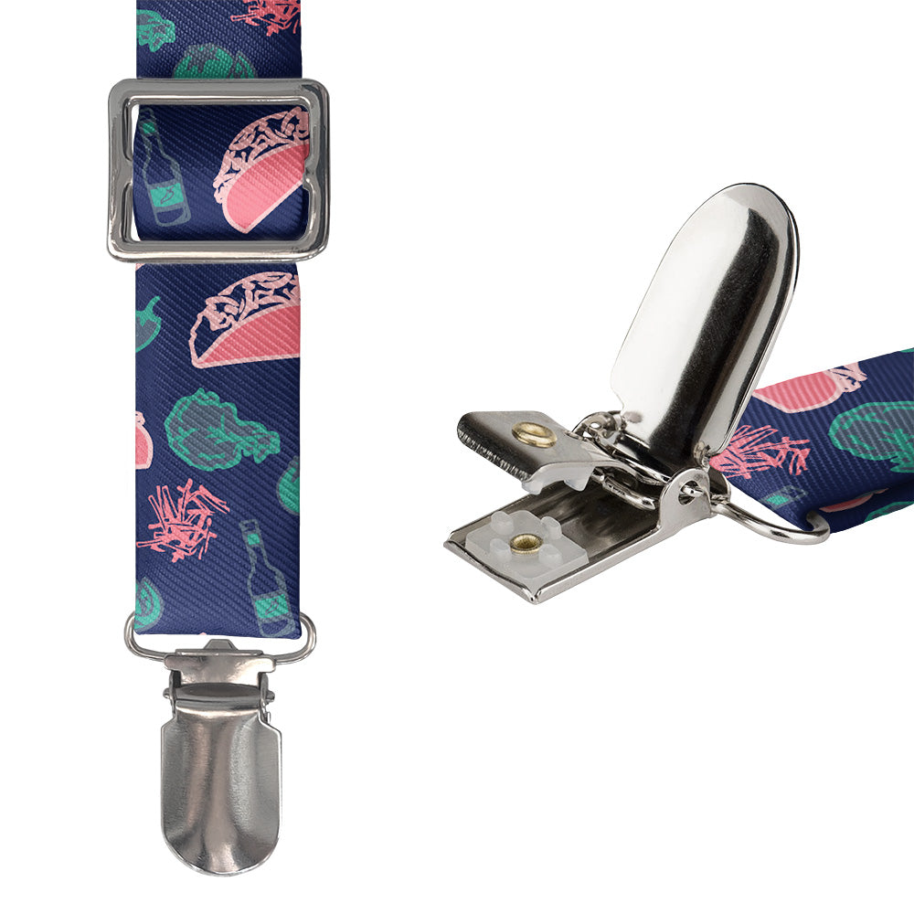 Our Taco Tuesday suspenders are made from a high quality poly twill made from recycled plastic water bottles.