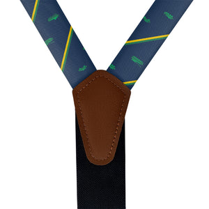 Printed fabric straps are 1-inch wide and secured to an elastic rear strap with vegan leather Y-back to allow the suspenders to move with you and extend as you bend. We use silver alligator pant clips that feature a special mechanism to ensure the suspenders clamp securely to pants.