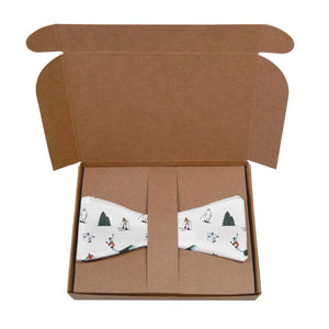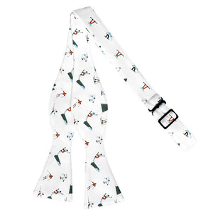 Sporting more skiers than a bunny hill, this snowboarding tie shows the world that you'd rather be on the slopes. Wear this whimsical winter bow tie après ski, or to the office the next day. You'll get compliments on your skiing tie long after the snow melts.