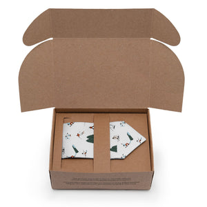 Sustainably sourced thoughtful packaging ready for gifting with 100% recycled and recyclable paper printed with vegetable inks.