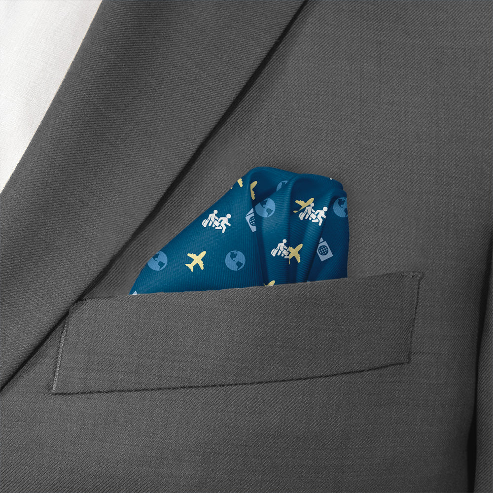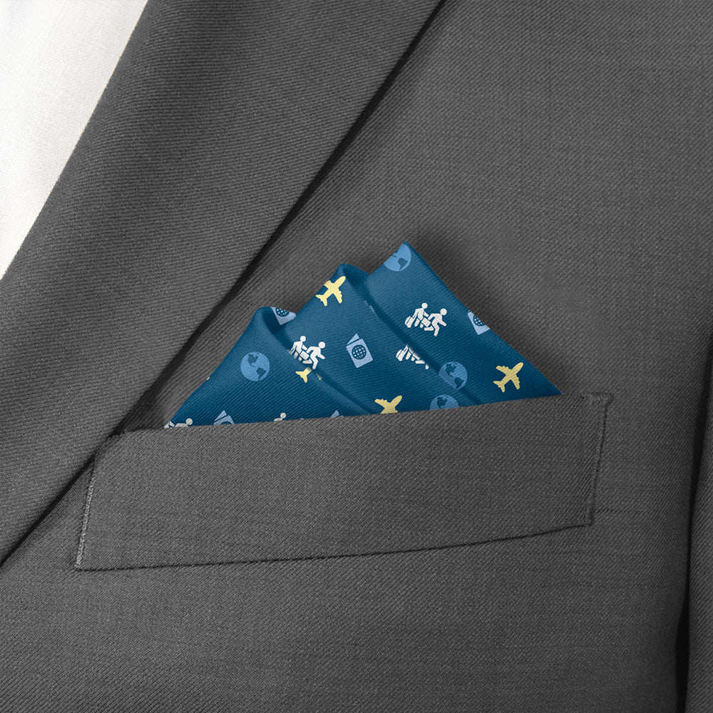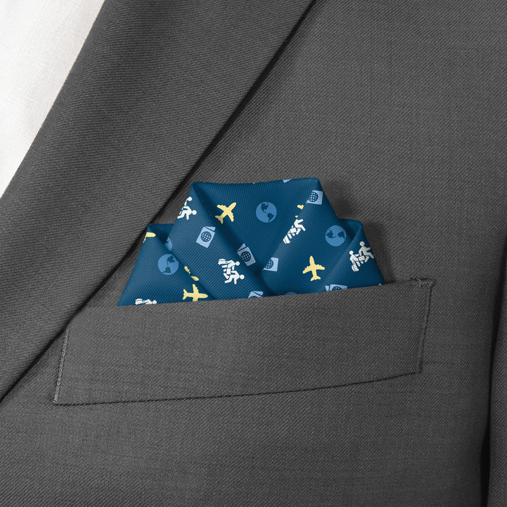 Traveling is always more fun with friends, and this modern travel themed pocket square is the perfect thing to toss in your suitcase. The Traveling with Friends pocket square makes a great gift for frequent travelers.