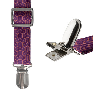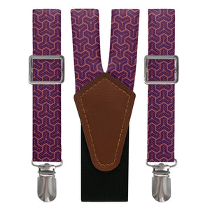 Inspired by the Japanese pattern called Bishamon Kikko, this design originated from the armor of a Buddhist god said to be the punisher of evildoers. The Triad Geo suspenders are customizable in any 2 colors you choose.