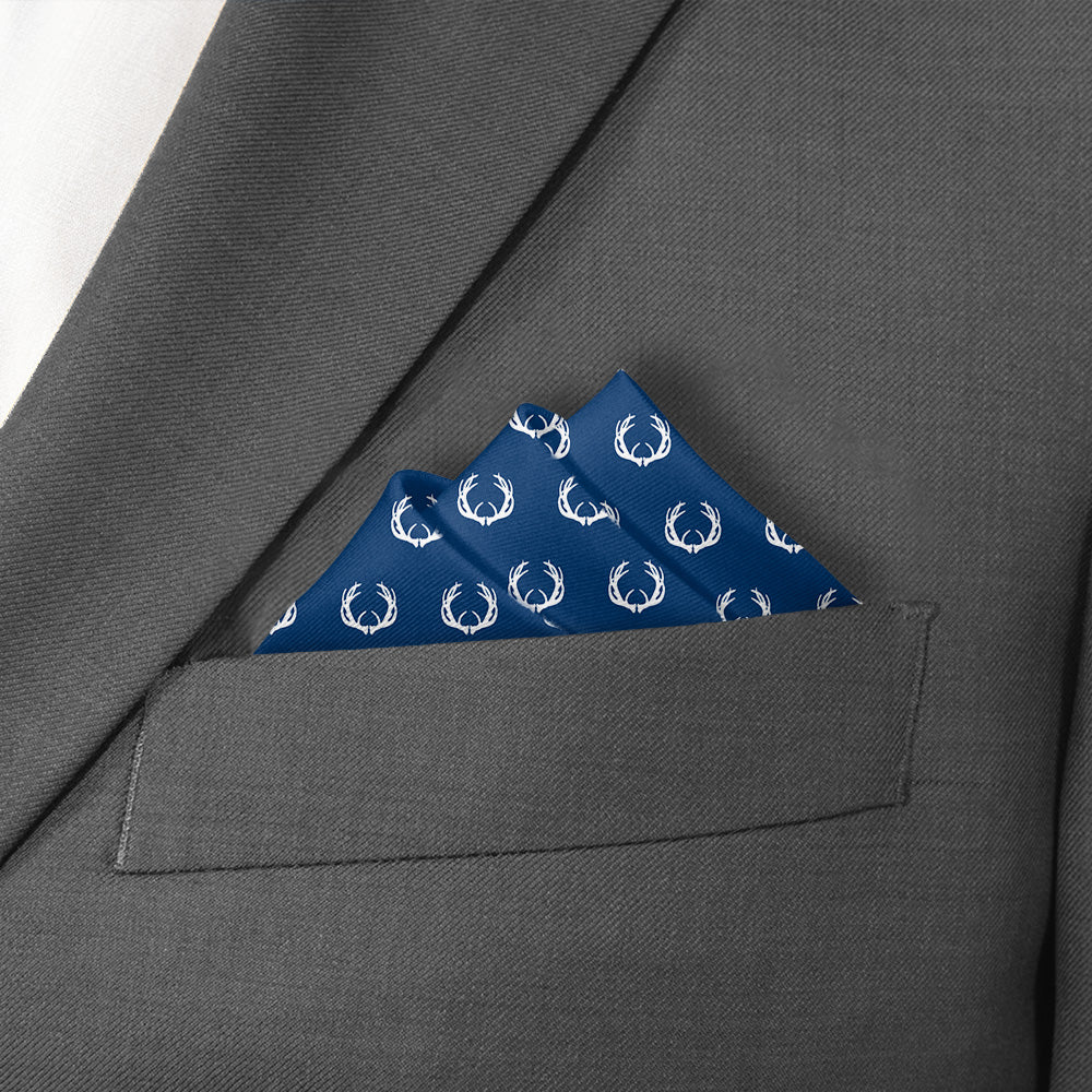The perfect pocket square for those with no more room left on their walls. Show off your trophies with our hunting inspired pattern. Available to customize in any 2 colors of your choice.